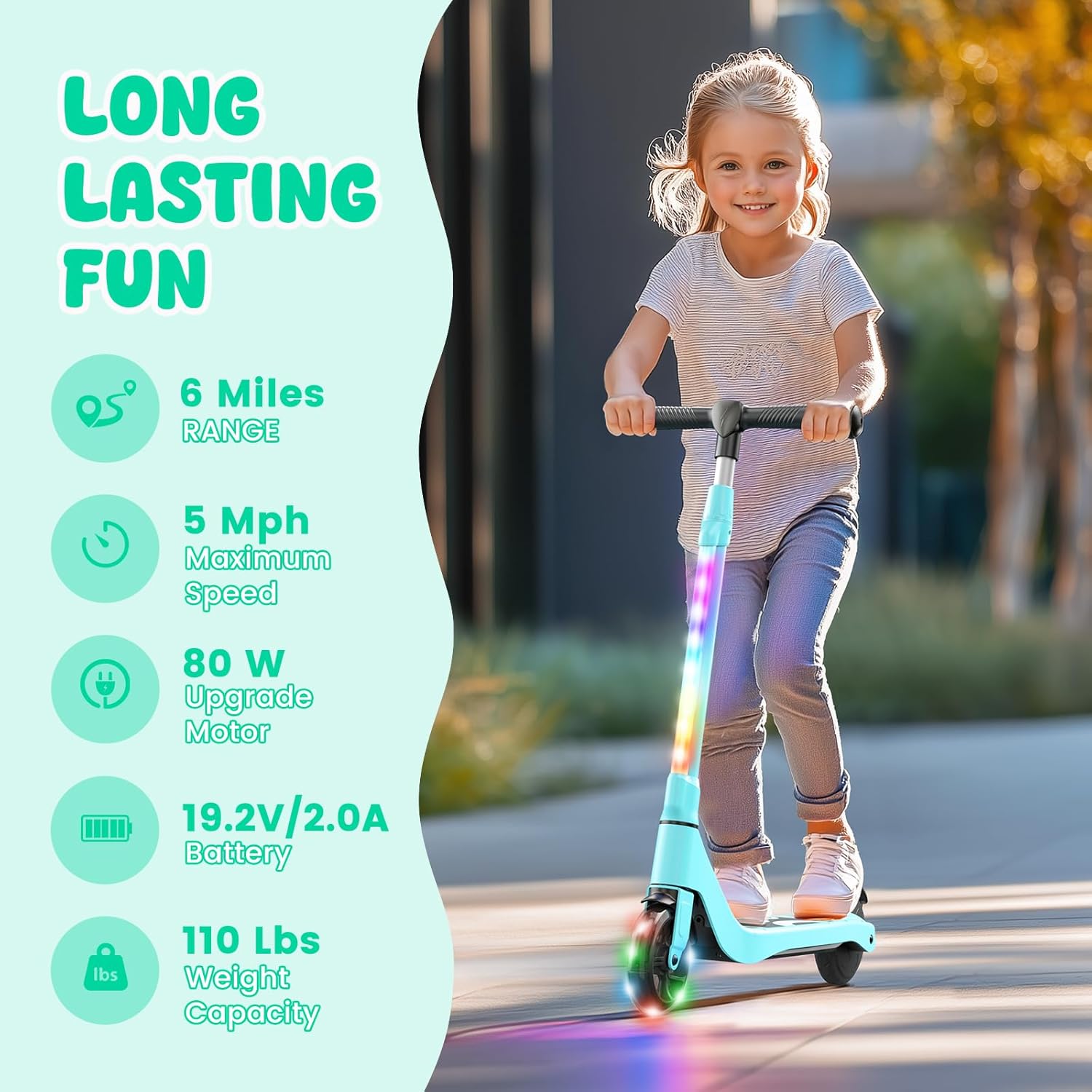 One of the most exciting features of the LIEAGLE electric scooter is its motion-activated LED light-up wheels. These lights enhance visibility during night rides and add a fun aesthetic that kids absolutely love. No batteries are required, making it convenient and hassle-free.
