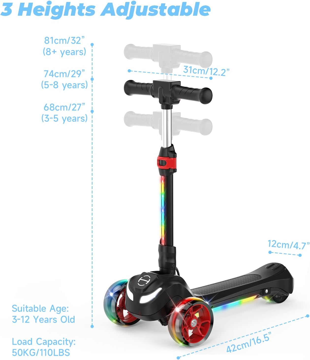Selecting the right size scooter for your child involves considering their age and size. Typically, scooters designed for kids will have a weight limit and recommended age group. Scooters meant for young children emphasize stability and control.
