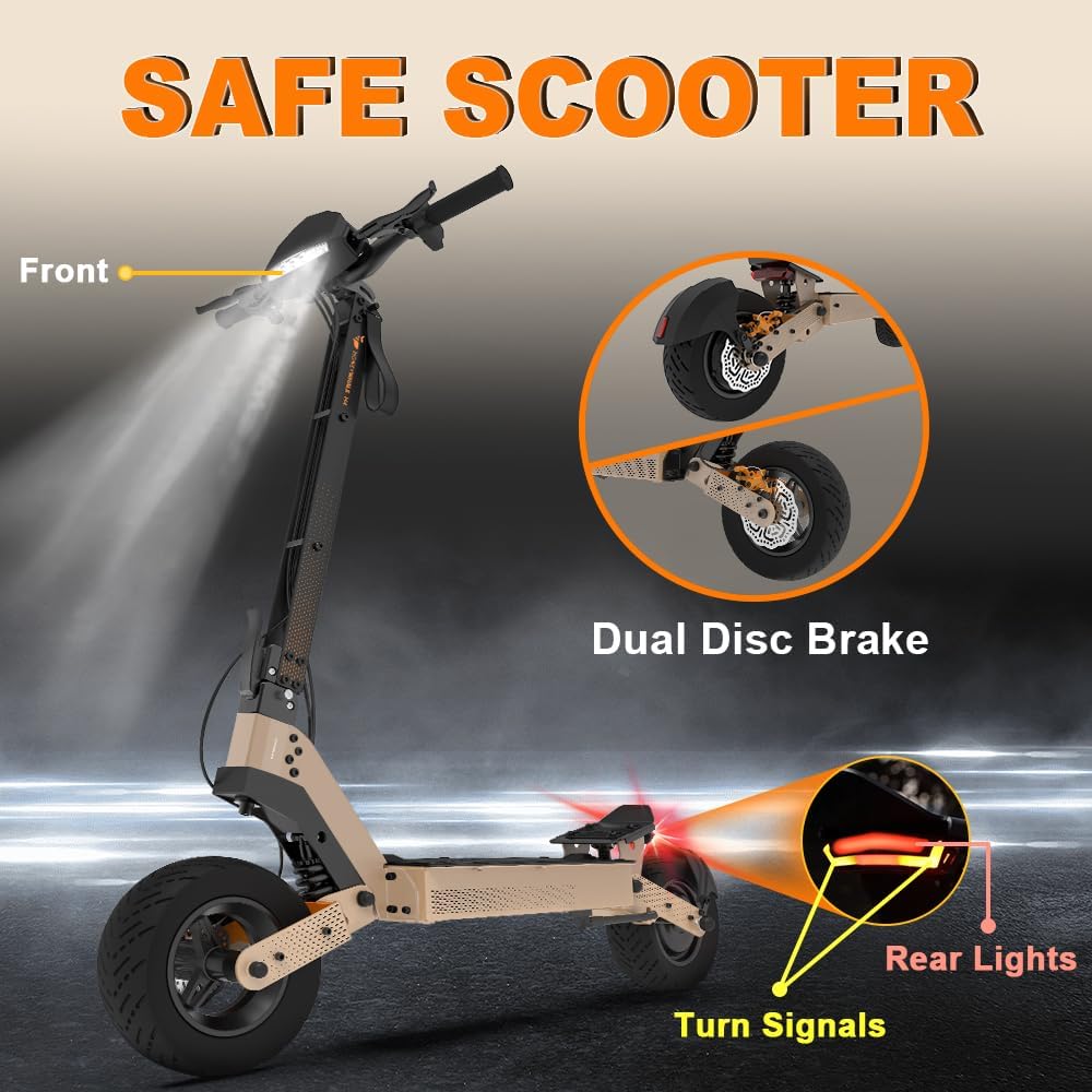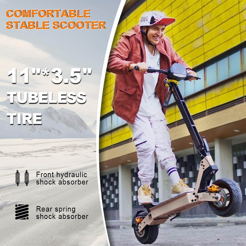 The H4 electric scooter is equipped with 2400W brushless motors, enabling speeds of up to 43 MPH and a climbing ability that handles gradients of 20°. This makes it an ideal choice for anyone looking for speed and reliability, whether navigating city streets or tackling rugged terrains.
