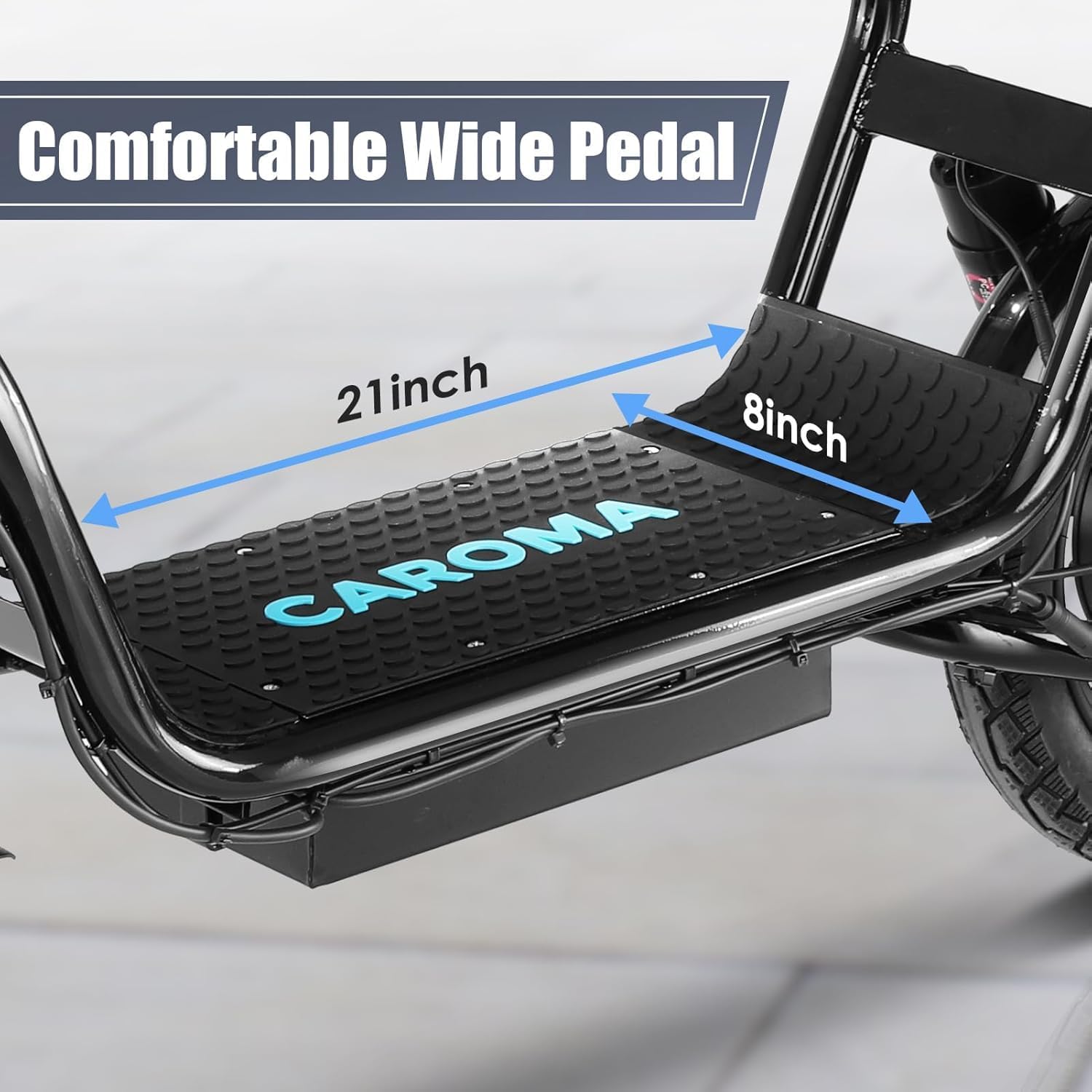 Equipped with a powerful 800W motor, the Caroma P1 ensures a smooth and speedy ride. It reaches top speeds of 20 MPH and effortlessly navigates 15-degree hills, making it a fantastic option for both city commuting and leisure rides.