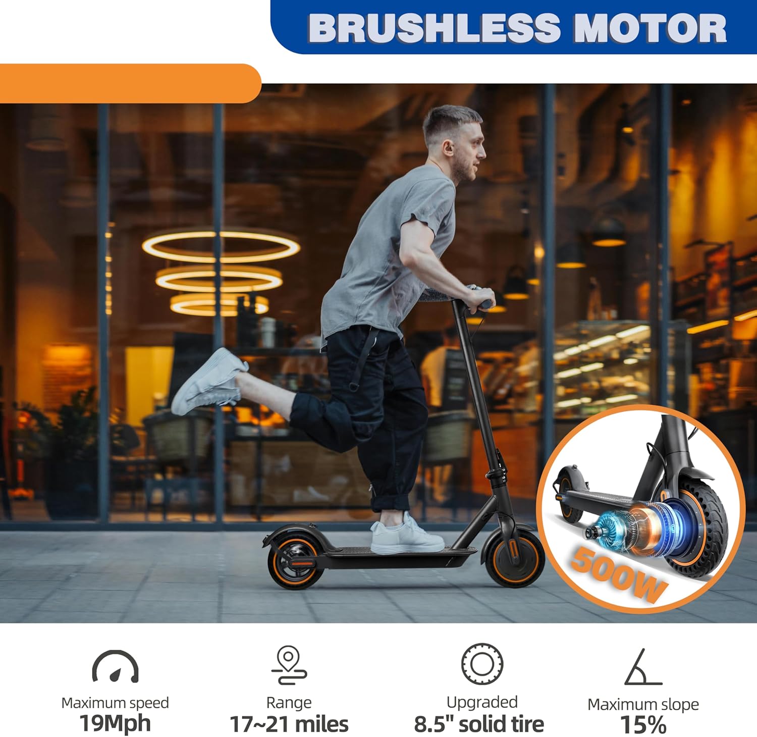 The motor power significantly impacts how fast and efficiently your scooter can operate. A 500W motor is standard for commuting purposes, allowing you to reach speeds up to 19 MPH, which is fast enough for city commutes.