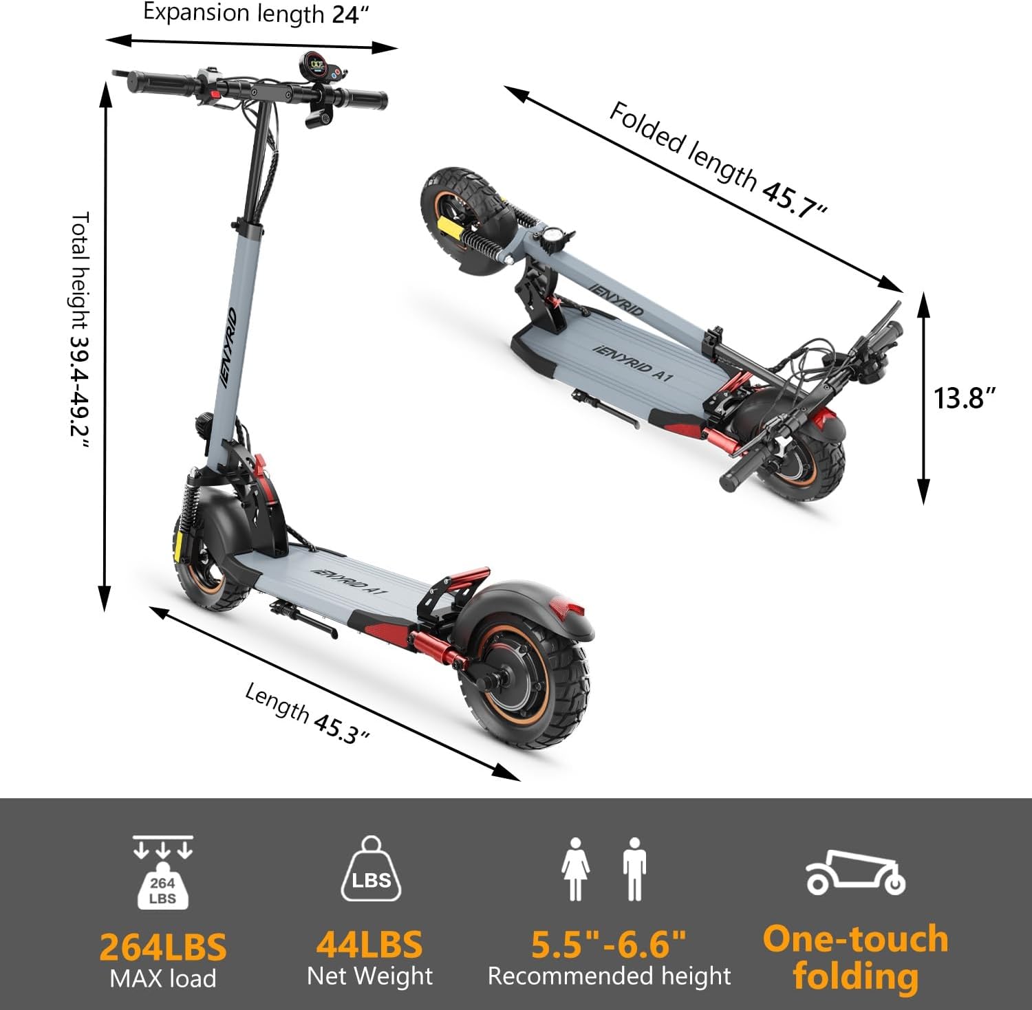 • Powerful 1000W Motor: Experience a thrilling ride with high top speeds.