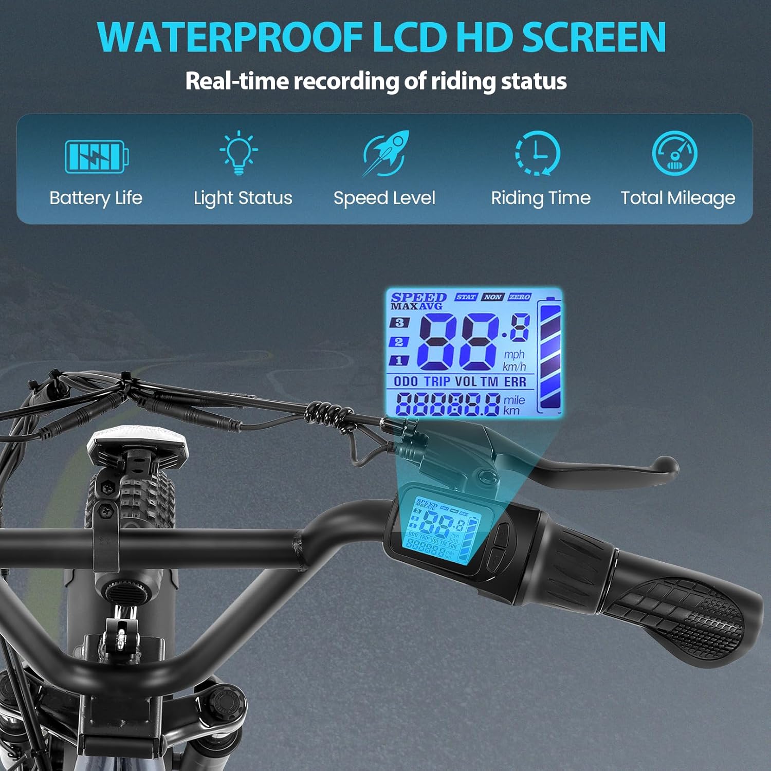 The upgraded LCD display provides real-time data on speed, battery status, and mileage. Riders can easily switch between the three available speed modes: 10 mph, 15.5 mph, and 20 mph. This feature is invaluable for adjusting your speed according to your riding conditions.