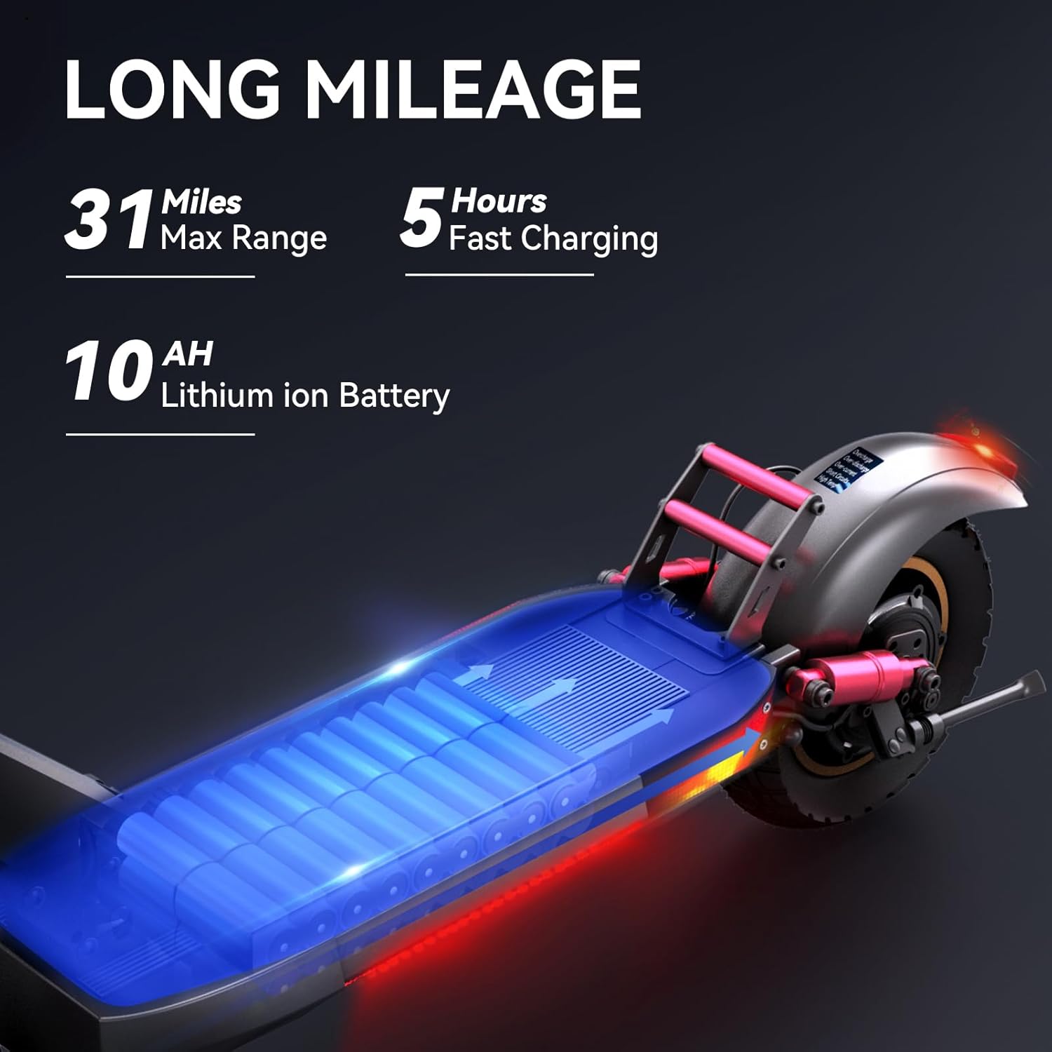 One of the scooter’s most impressive features is its 31 miles maximum range on a single charge. Boasting a high-capacity battery, you can travel further, making it ideal for daily commutes or weekend adventures. Plus, a quick charging time of just 4-5 hours means you can stay on the go without long breaks.