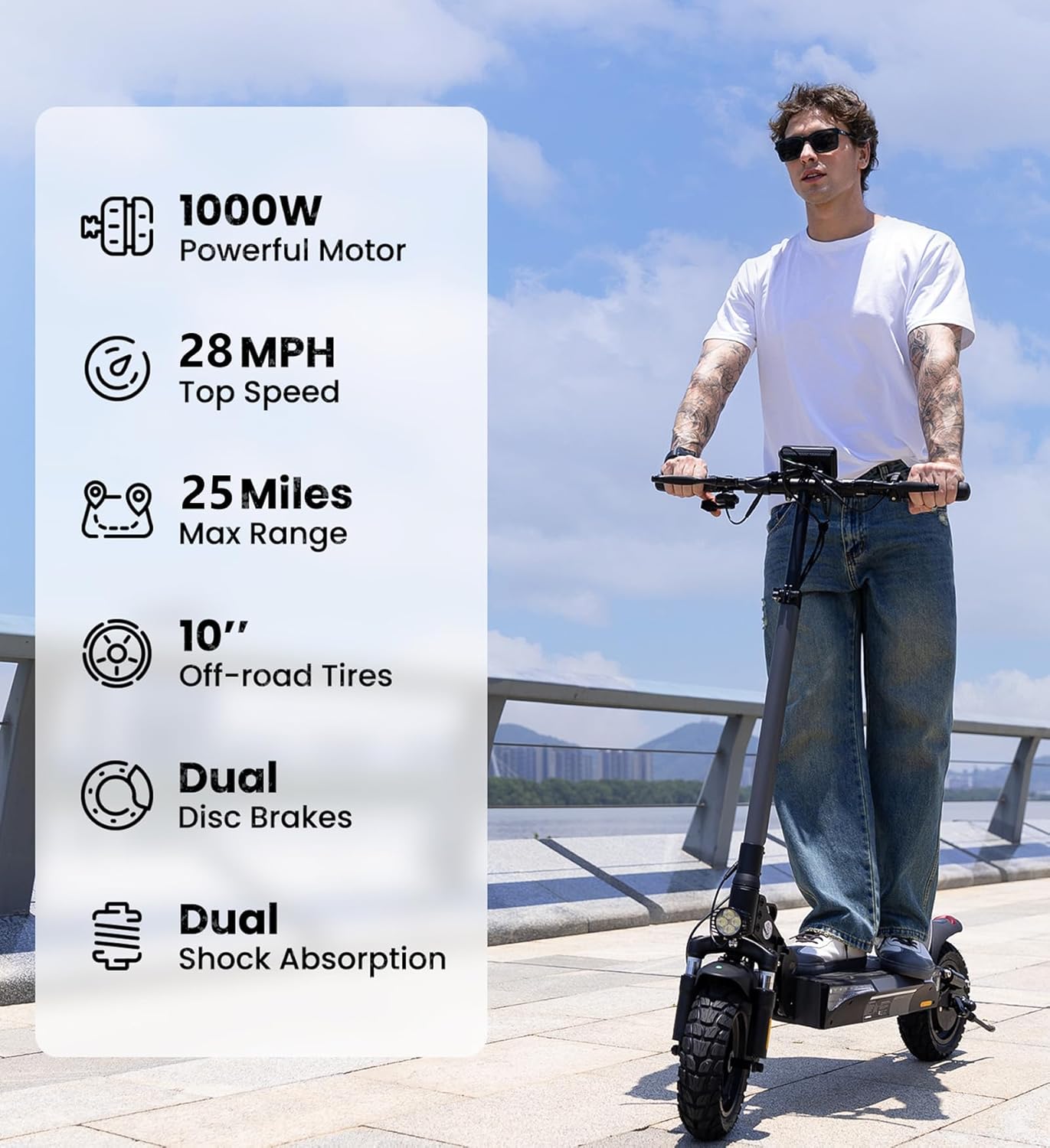 Power is essential, especially if you’re commuting uphill or over rough terrain. A 1000W motor can reach speeds up to 28 MPH, making it perfect for both urban and off-road adventures.