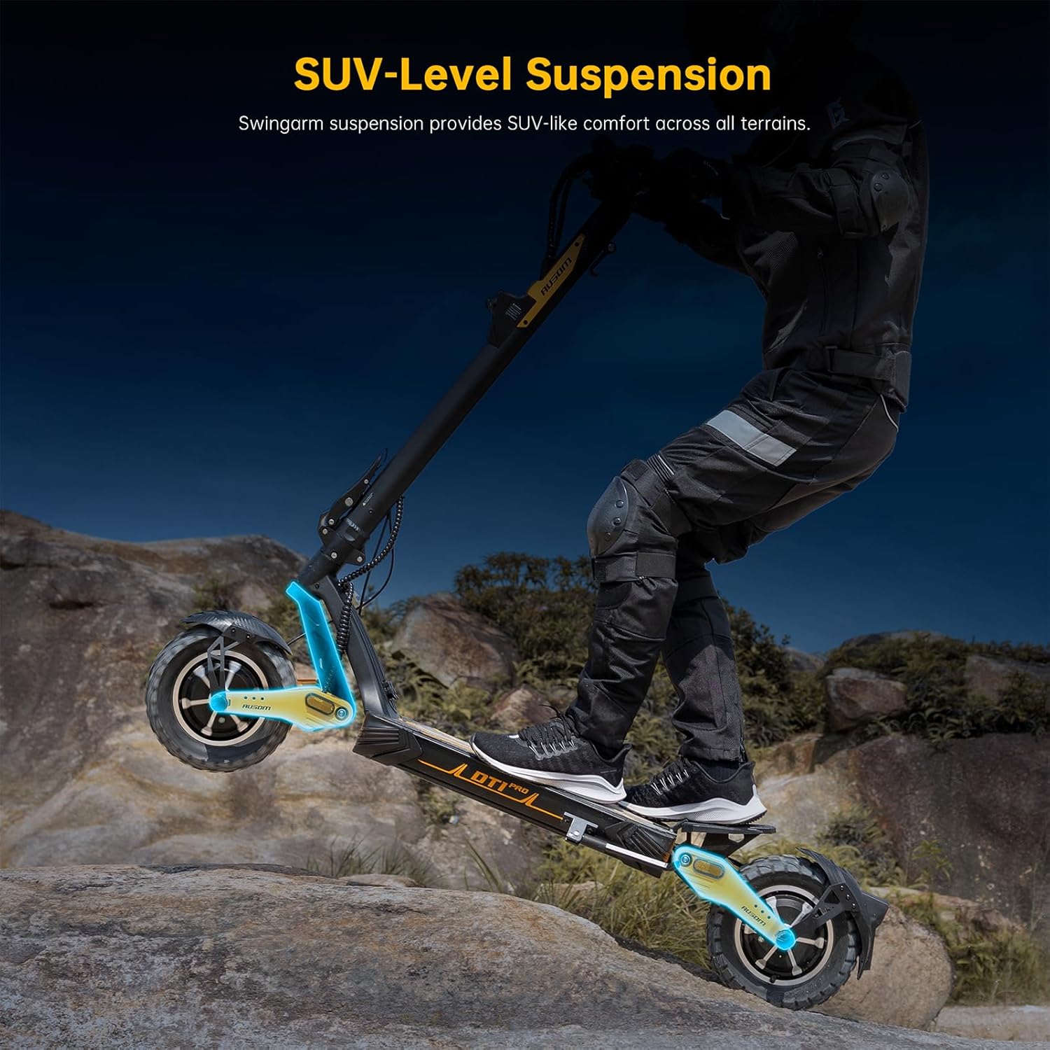 The SUV-level suspension and swingarm design of Ausom scooters effectively absorb shocks, ensuring a smooth ride even on rough terrains. This feature is crucial for off-road adventures, where a comfortable ride can greatly enhance your experience.