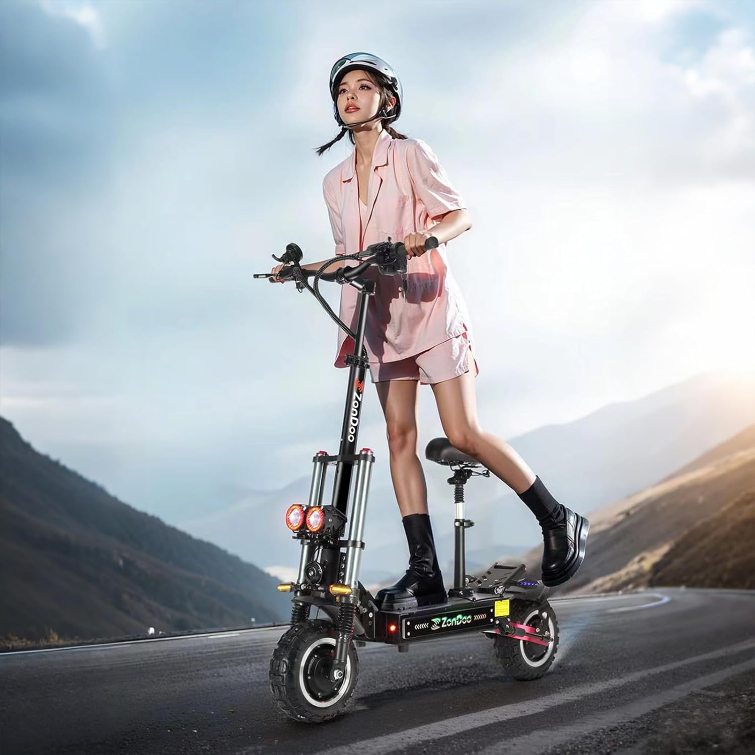 The ZO01 Plus is designed for adults who crave speed and long-range capabilities. With a 6000W motor, this scooter can reach speeds of up to 55 mph and cover distances of 60 miles.