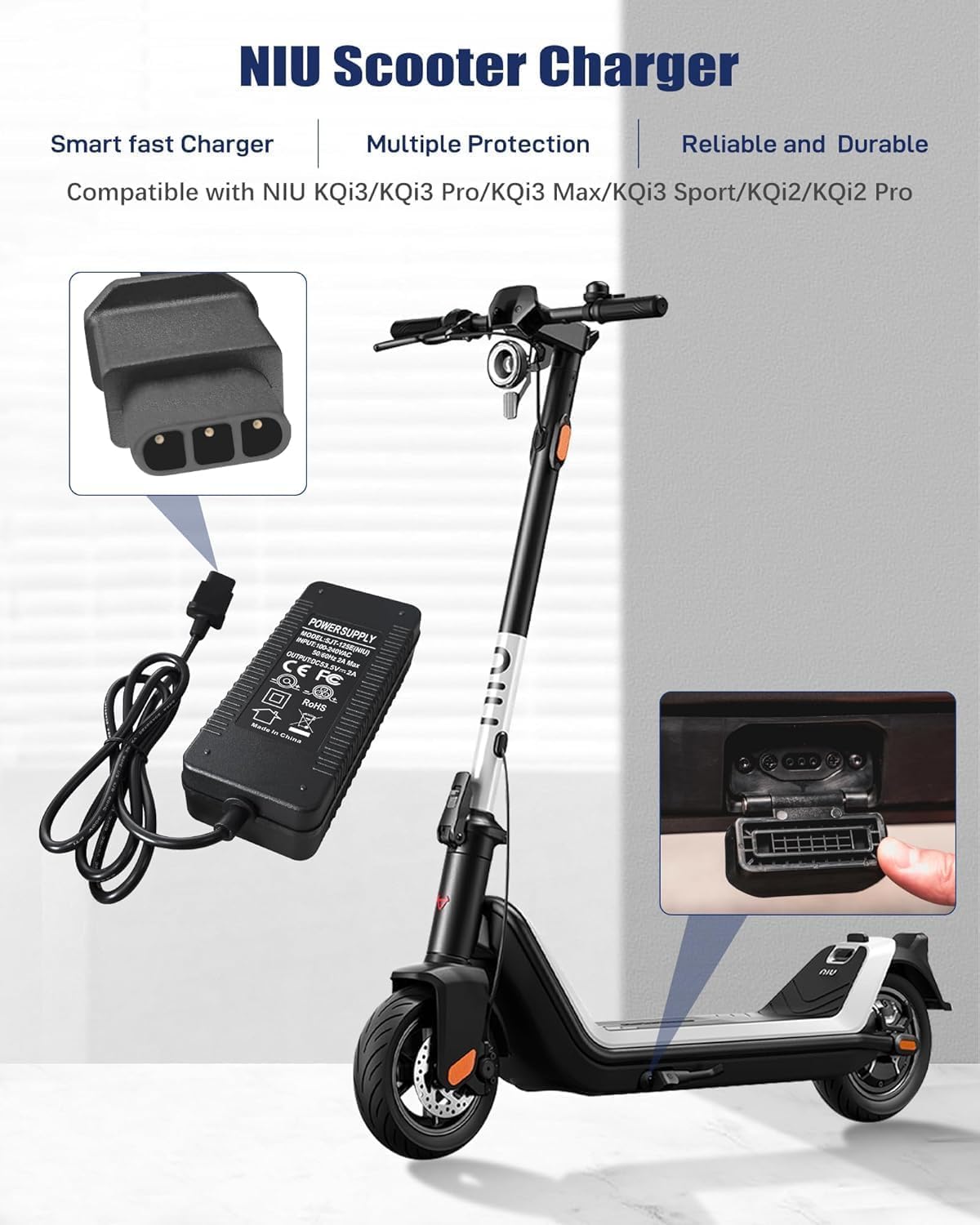 These chargers are compatible with a wide range of models, including NIU KQi3, KQi3 Pro, KQi3 Maximum, KQi3 Sport, KQi2, and KQi2 Pro models, ensuring that you can use them across various NIU scooters.