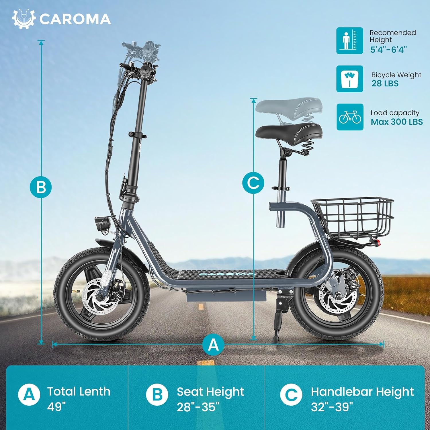Customizing your ride is effortless with Caromaâs adjustable seat and handlebar. Riders of all heights will find a comfortable position, ensuring that both adults and teens can enjoy their rides safely.