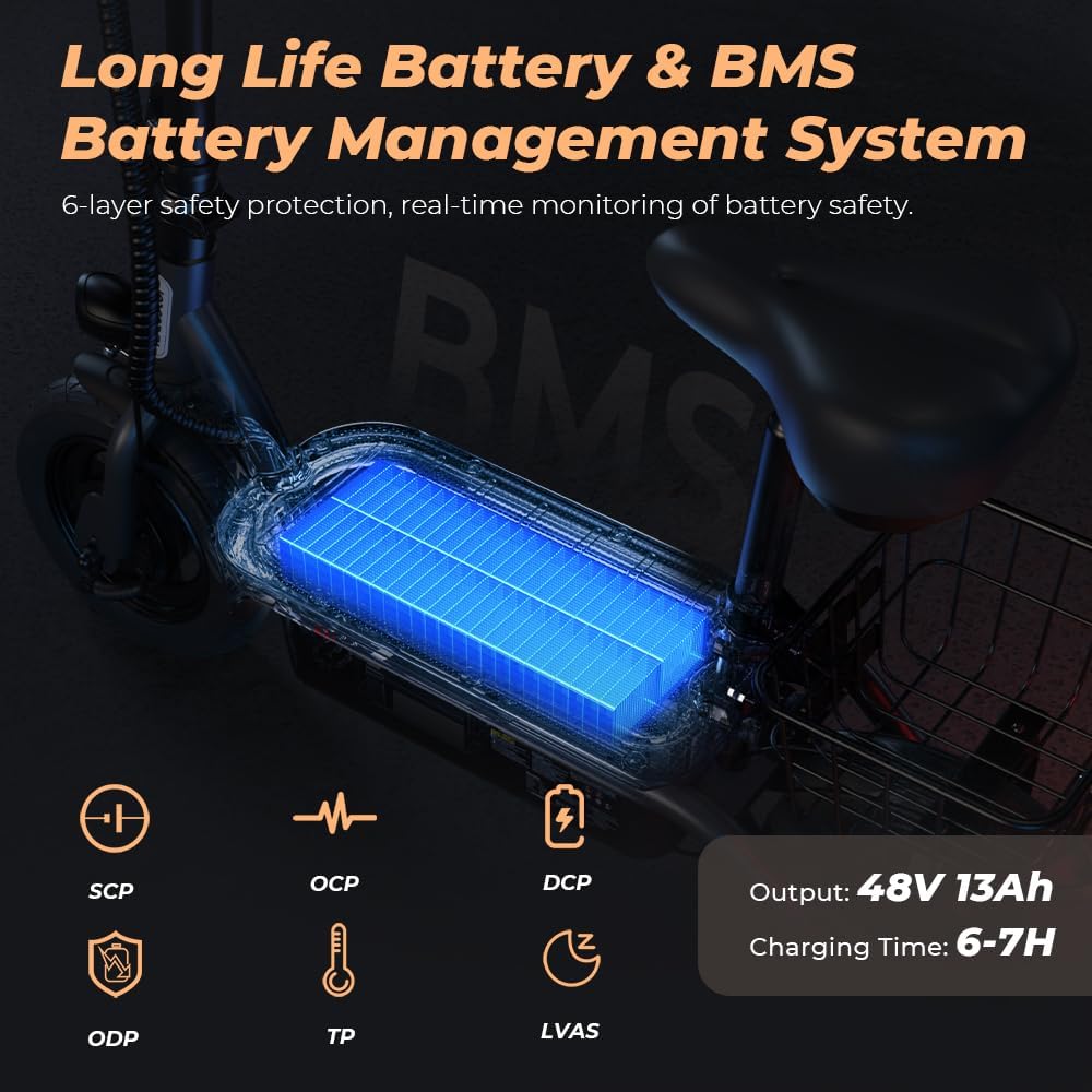 A substantial range is crucial for daily commuting and extended rides. Why is range important? A large 48V 13Ah battery can offer an exceptional 37-mile range on a single charge, enabling users to conquer long distance journeys without the hassle of frequent recharging. For busy professionals or leisure riders, this feature can save both time and effort in managing battery life.