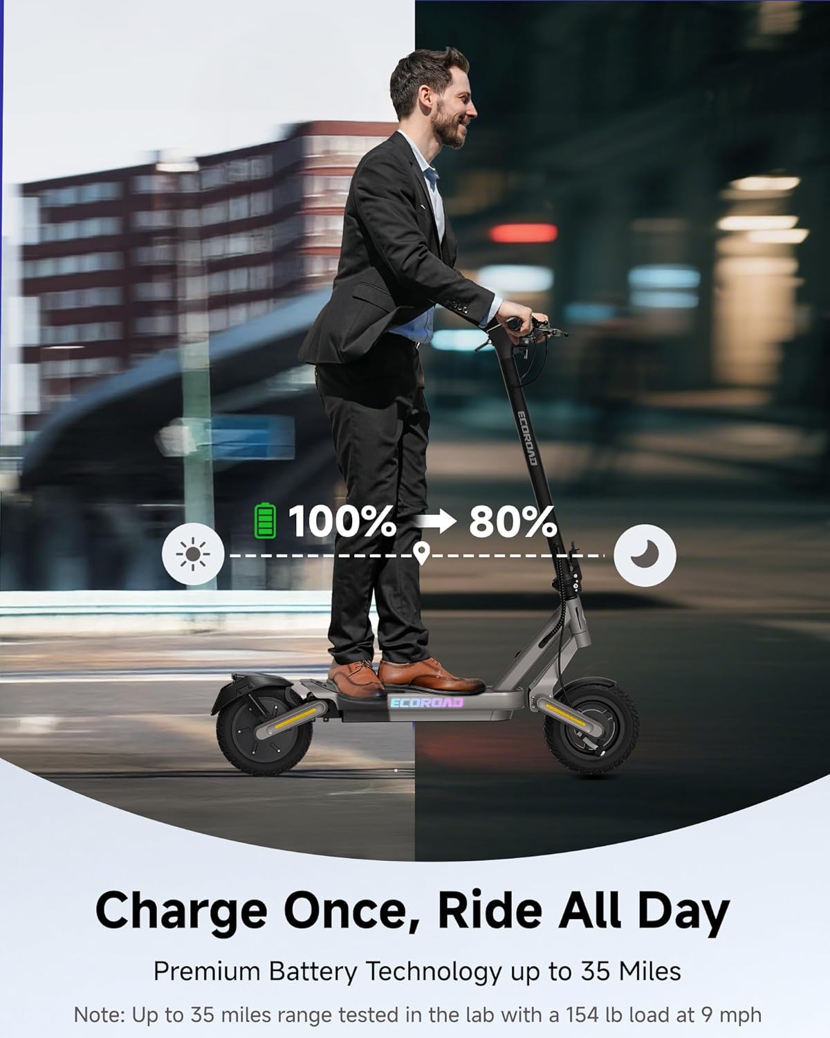 - Ride up to 35 miles on a single charge. Say goodbye to range anxiety with a battery that prioritizes long trips.