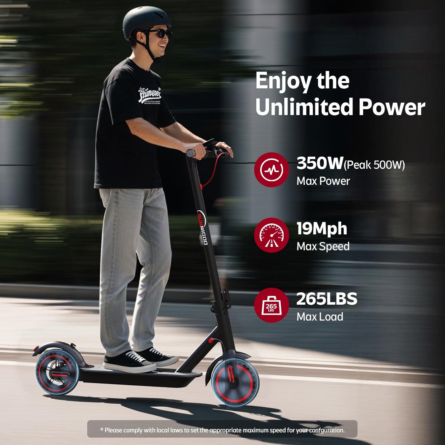 The heart of this electric scooter is its robust 350W brushless motor, boasting a peak output of 500W. With an ability to reach speeds of 19 mph, this scooter stands as a formidable choice for both leisurely rides and daily commuting. Imagine zooming through city streets, making it to work on time without breaking a sweat. The scooter’s performance is evident, providing smooth acceleration and quick responses to rider commands.