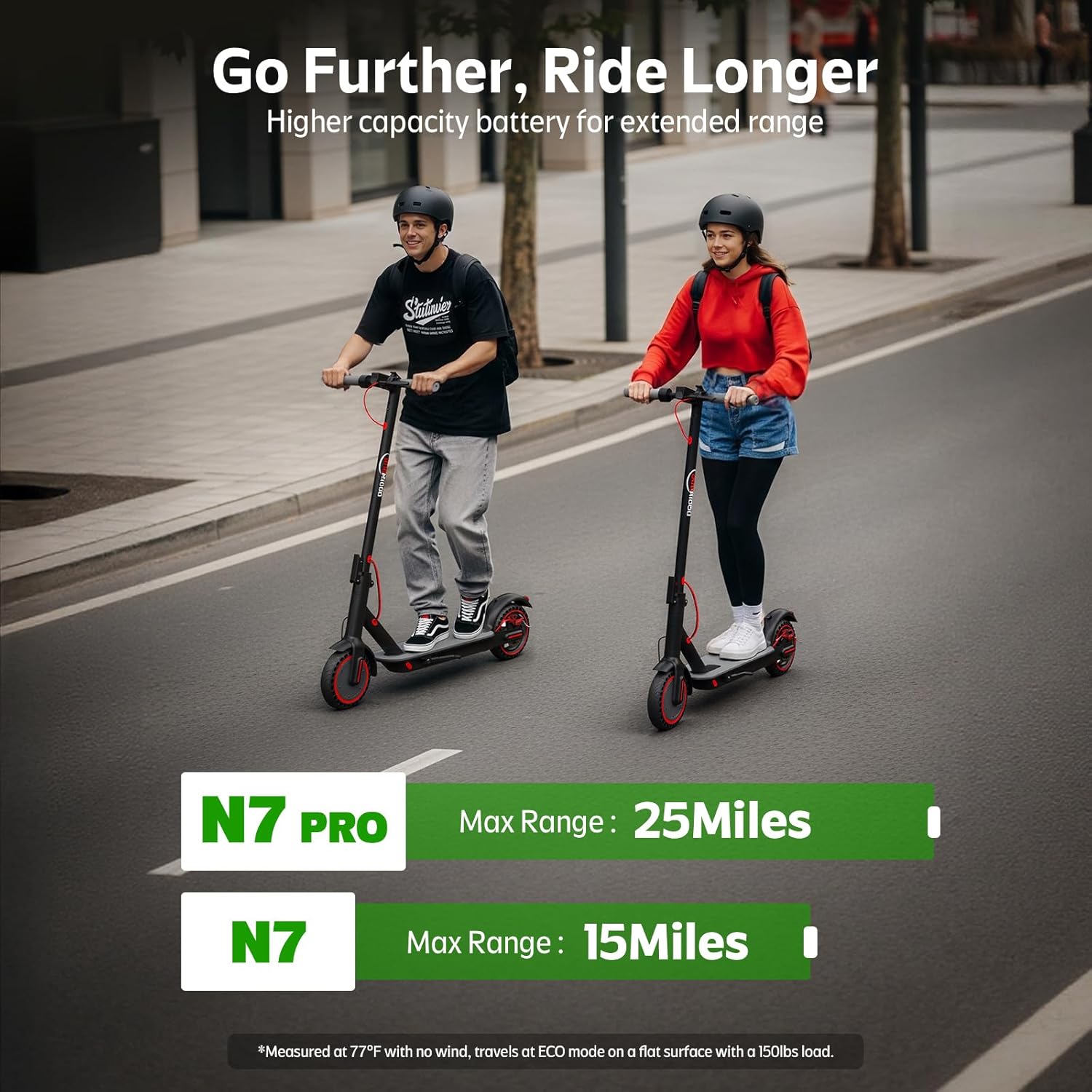 Are you tired of scooters with mediocre battery life? This scooter features a powerful 10.4Ah 36V battery (with a total capacity of 374Wh), offering an expansive 25-mile range on a single charge. Depending on rider weight, road conditions, and speed settings, you can confidently plan your outings without frequent pit stops for charging.