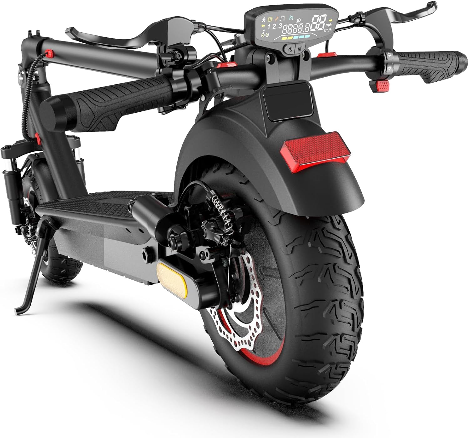 Safety is paramount in urban riding. Dual disc brakes, alongside front headlights and turn signals, significantly increase visibility and control.