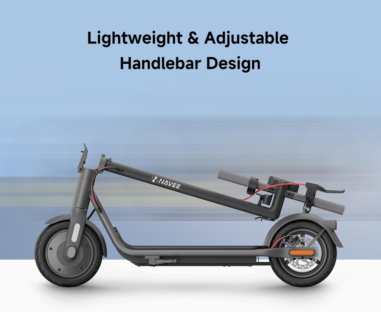 The scooter’s lightweight design and adjustable handlebars save over 66% of storage space. This innovative feature makes it easy to transport the NAVEE V50 on public transport or store in your vehicle without hassle.