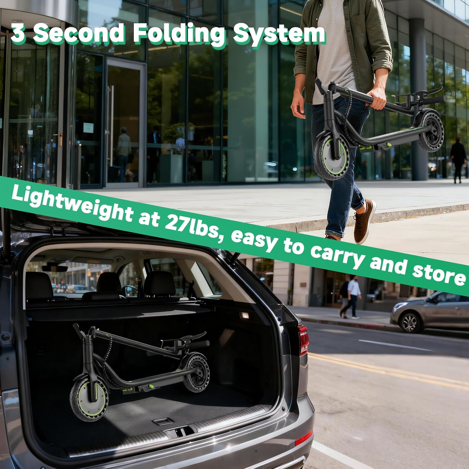 - Quick Folding Mechanism: A scooter that folds in 3 seconds simplifies transport and storage, whether it fits in your car trunk or on public transport.