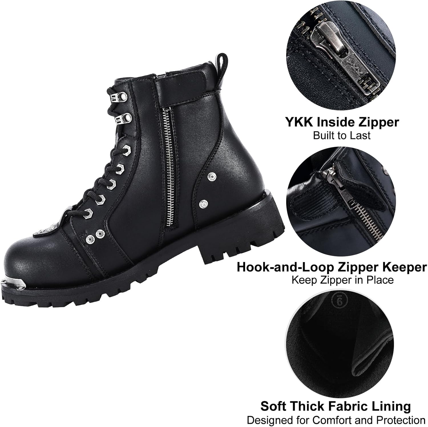 Low heels enhance stability while riding. They prevent your feet from slipping off the footpegs. Plus, they contribute to a more comfortable posture, allowing you to concentrate on the road ahead.