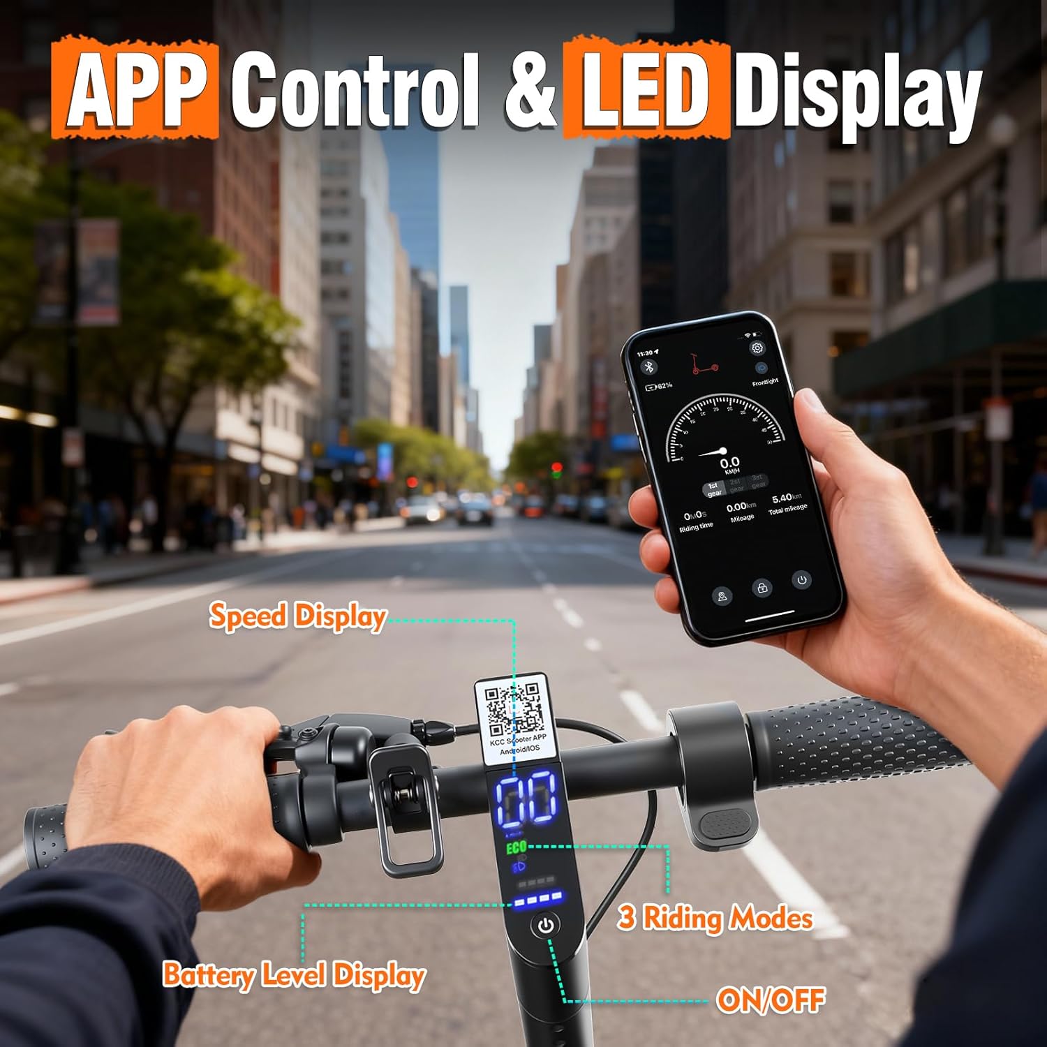 Equipped with integrated technology, this scooter allows users to monitor speed, battery level, and more through a smart app, enhancing the overall user experience.
