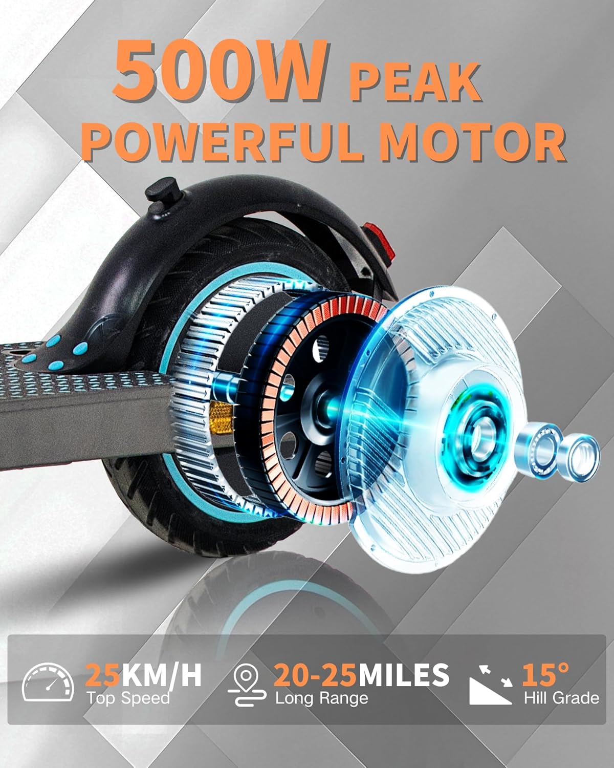 The heart of the QnQ Electric Scooter is its 500W peak rear-wheel-drive brush-less motor. This powerful motor enables the scooter to reach exhilarating speeds of up to 22 mph. Whether you’re commuting to work or cruising around the neighborhood, this scooter provides not just speed but also a thrilling riding experience.