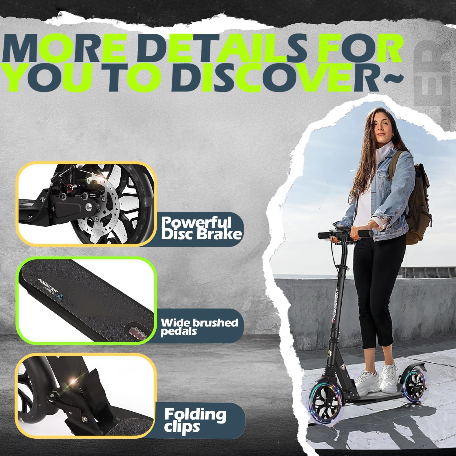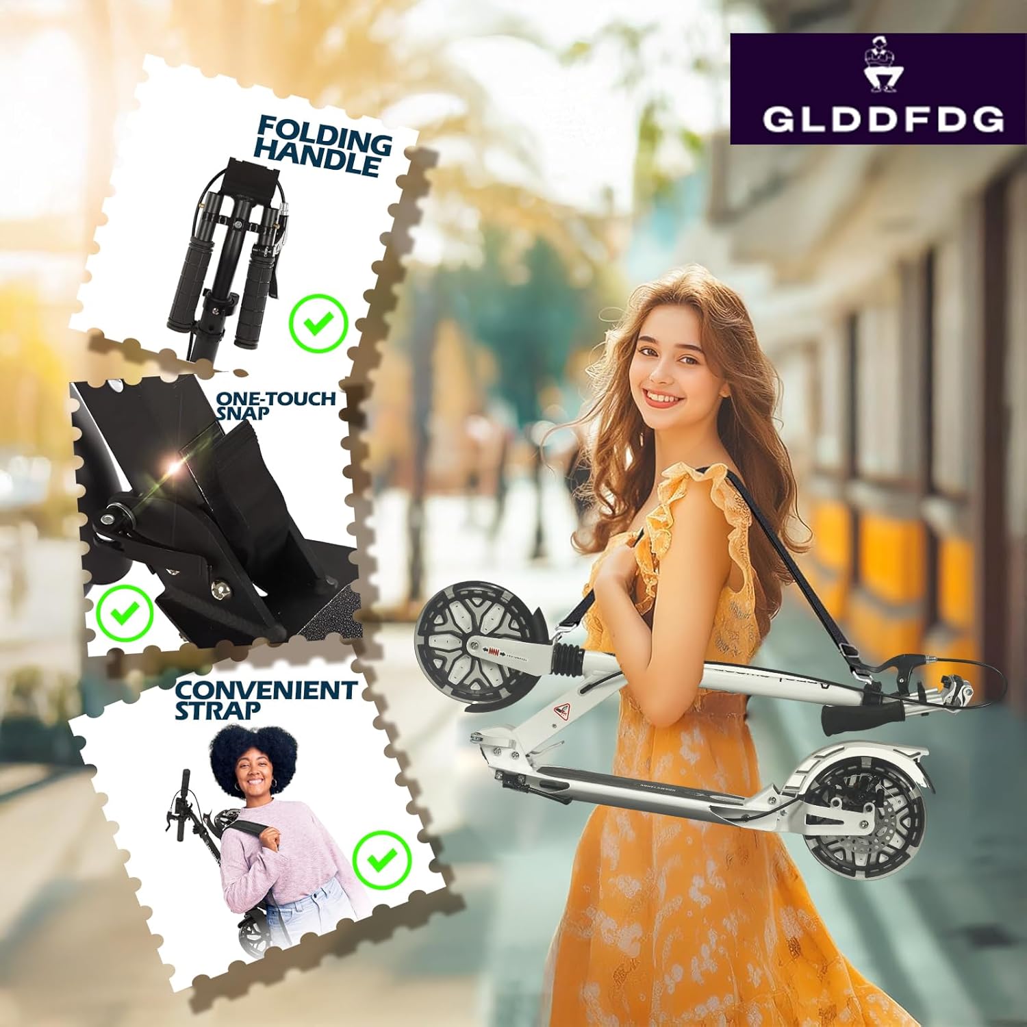 GLDDFDG’s adult scooter can support riders up to 300 lbs, making it perfect for parents and older kids alike. The high-quality aluminum alloy construction ensures safety and durability while the anti-slip pedal provides extra grip for secure rides.