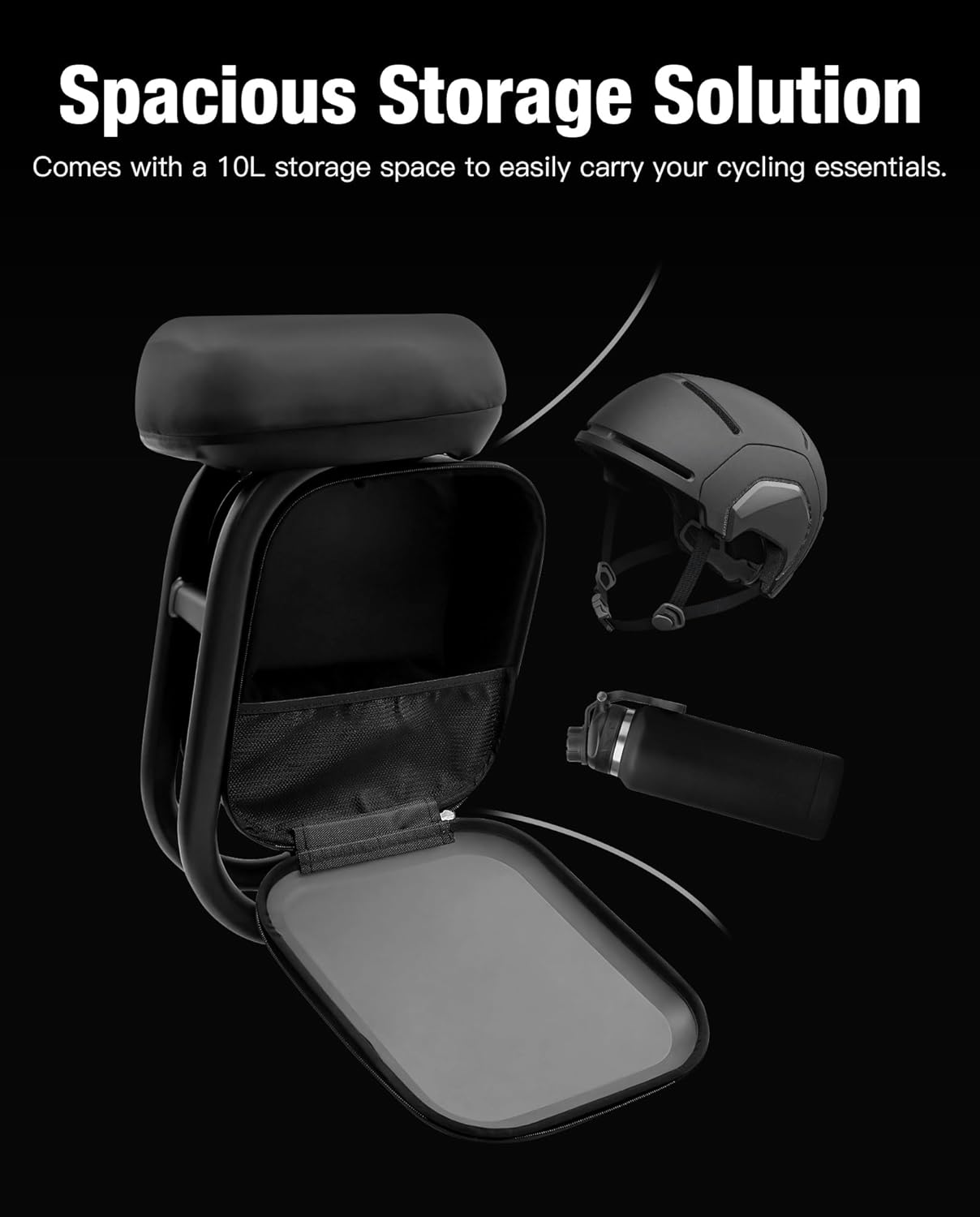 - Spacious Storage: The seat comes with a 10-liter storage space where you can easily carry your essentials—like a water bottle, snacks, or tools.
