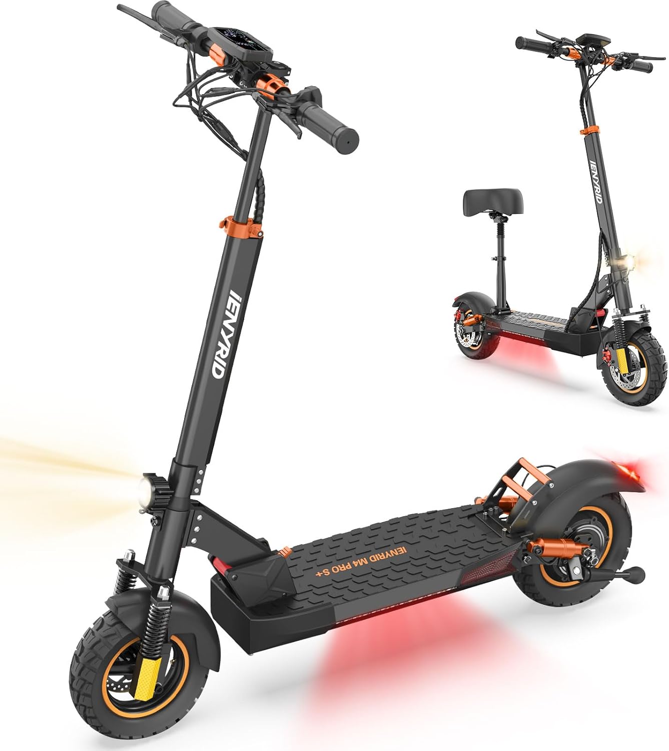 Comfort is paramount when choosing an electric scooter. The iENYRID M4 PRO S+ employs a multi-shock absorption design, featuring both front and rear dual shock absorbers, along with a seat spring system. This innovative design allows the scooter to absorb most bumps and vibrations, enabling a smooth ride on rugged terrains.