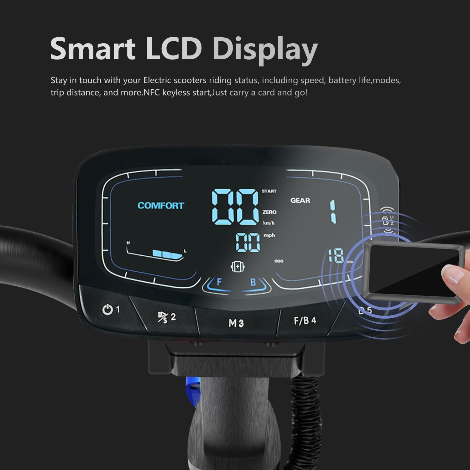 The high-definition display serves as your dashboard, allowing you to easily monitor speed and battery life. This feature enhances the overall riding experience by keeping you informed and safe.