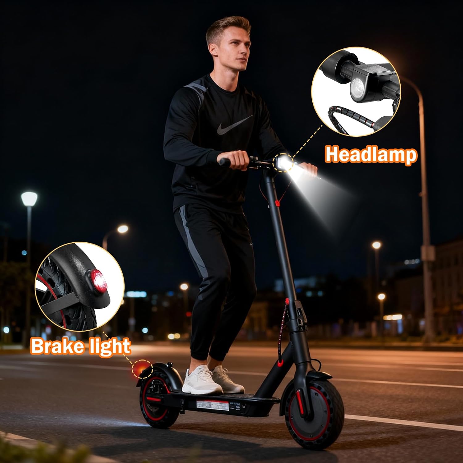 Safety First: The scooter is certified by UL2272, which establishes stringent safety standards. It includes bright LED headlights for visibility at night and a dual disc braking system with EABS anti-lock brakes to ensure your safety during rides.