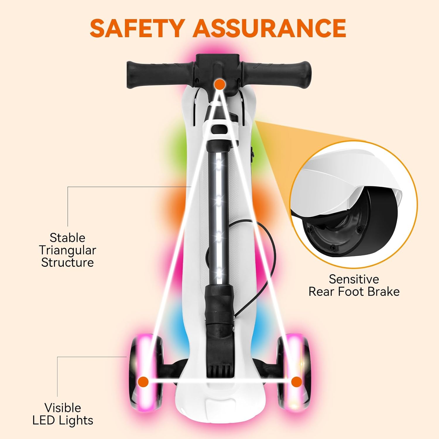 Safety is crucial when selecting a scooter for kids. The three-wheel design provides triangular stability, reducing the risk of tipping over. Additionally, ASTM-certified durable PU tires, a reinforced wider deck, and a responsive rear foot brake collectively ensure maximum safety for young riders. The lean-to-steer technology makes navigability easy and intuitive.