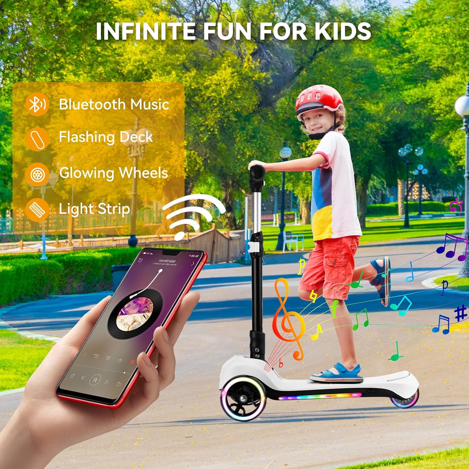 Riding becomes an entertaining experience with the built-in Bluetooth music system. Children can connect their devices to play their favorite tunes while scooting, bringing an extra layer of joy to their adventures.