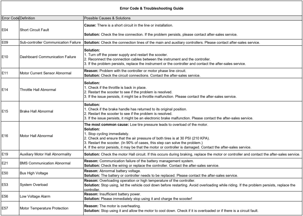 Riders don’t need to worry about unexpected interruptions. The scooter displays an E16 error message (“Motor Hall Abnormal”) if under-inflated tires are detected. Inflate tires to 30 PSI and restart the scooter to resolve most issues easily.