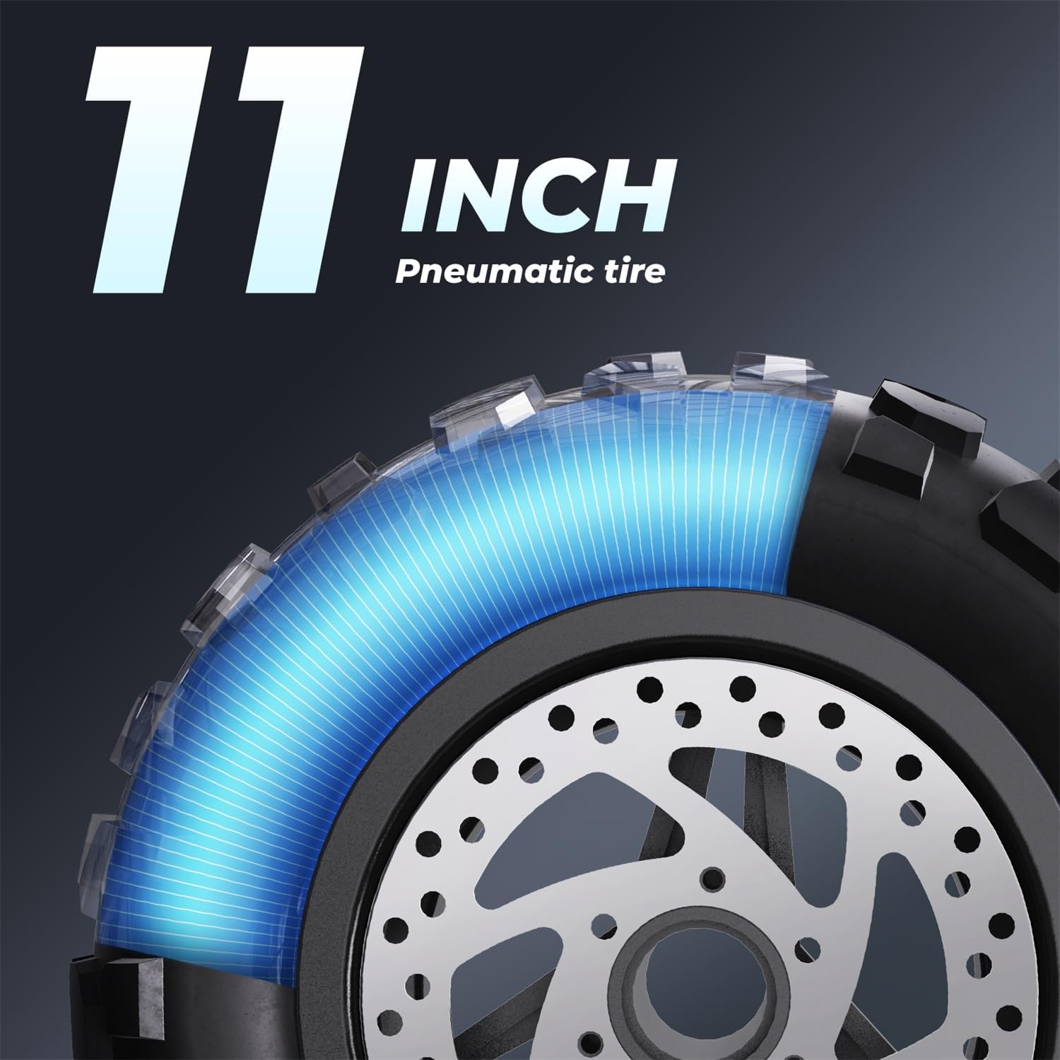 What happens when you combine 11-inch pneumatic tires with a robust suspension system? You get exceptional shock absorption for a smooth ride over any terrain. The independent suspension system supports weights of up to 330 lbs, ensuring comfort for all riders.