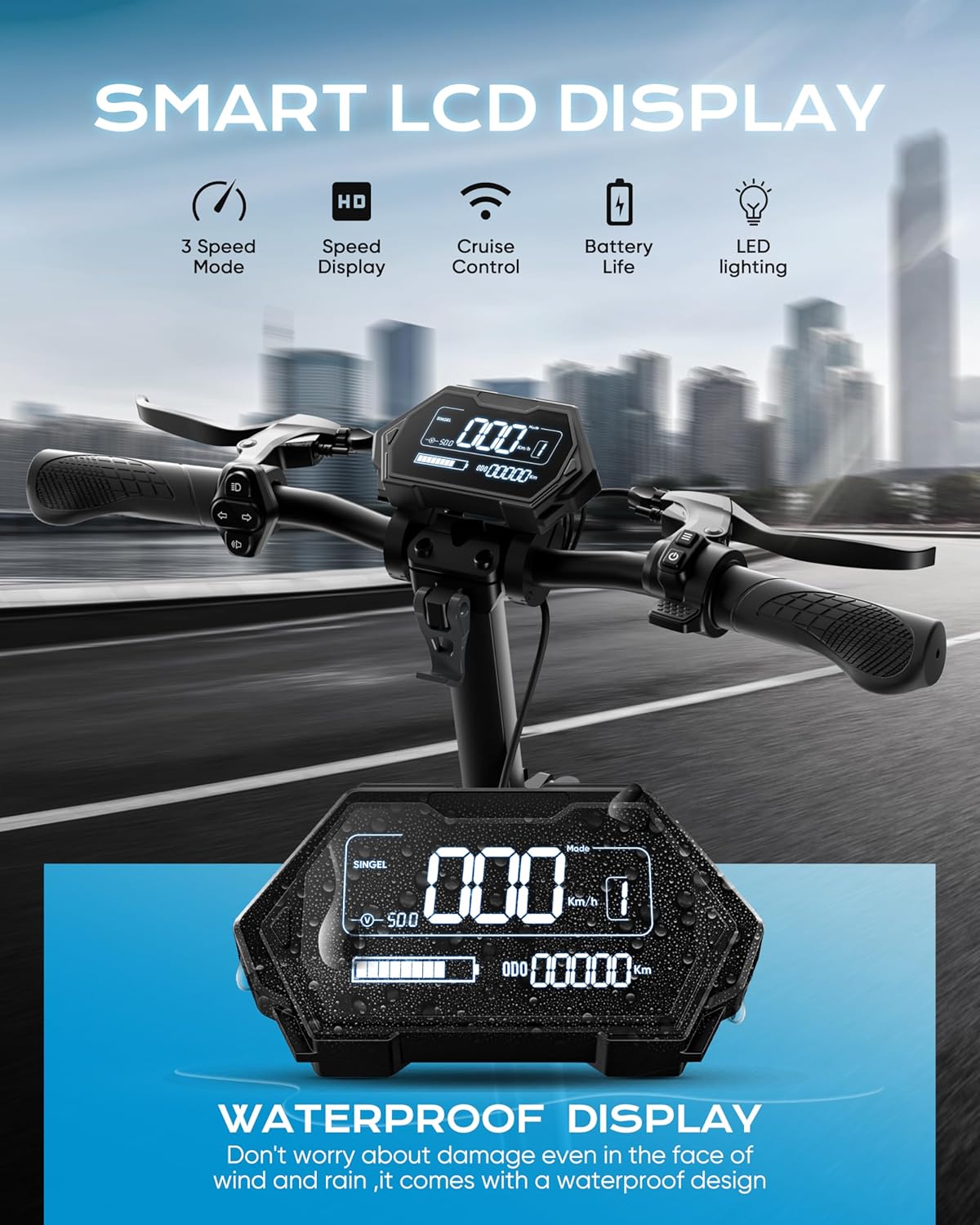 The RS3 electric scooter features dual 1600W motors, allowing it to reach speeds of up to 40MPH. This significant power output means that users can enjoy quick accelerations, zipping from 0 to 20MPH in just 2.5 seconds. For speed enthusiasts and urban explorers, this scooter offers a thrill like no other.