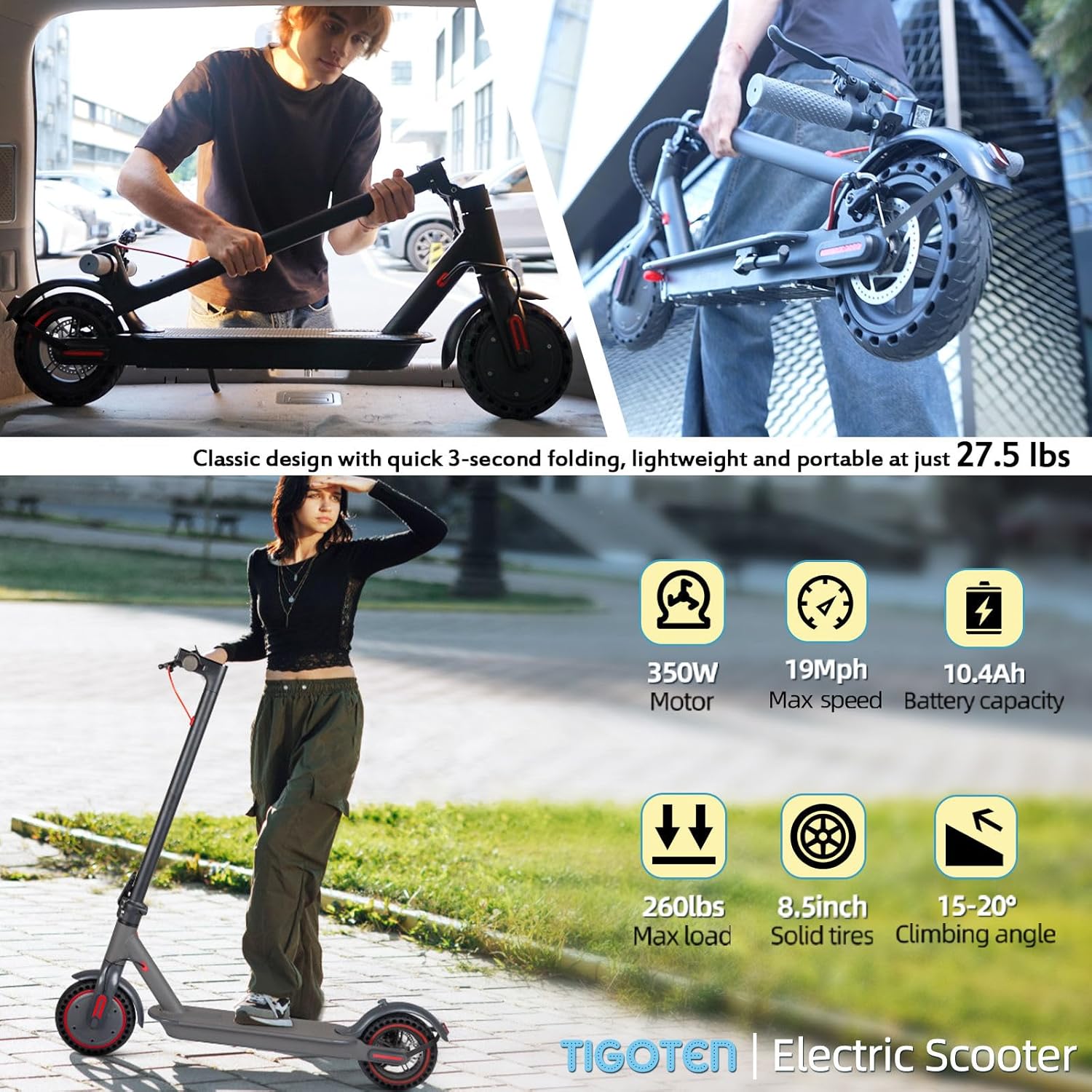 • 350W Motor: A well-balanced option for urban transport, offering a top speed of 19 mph.