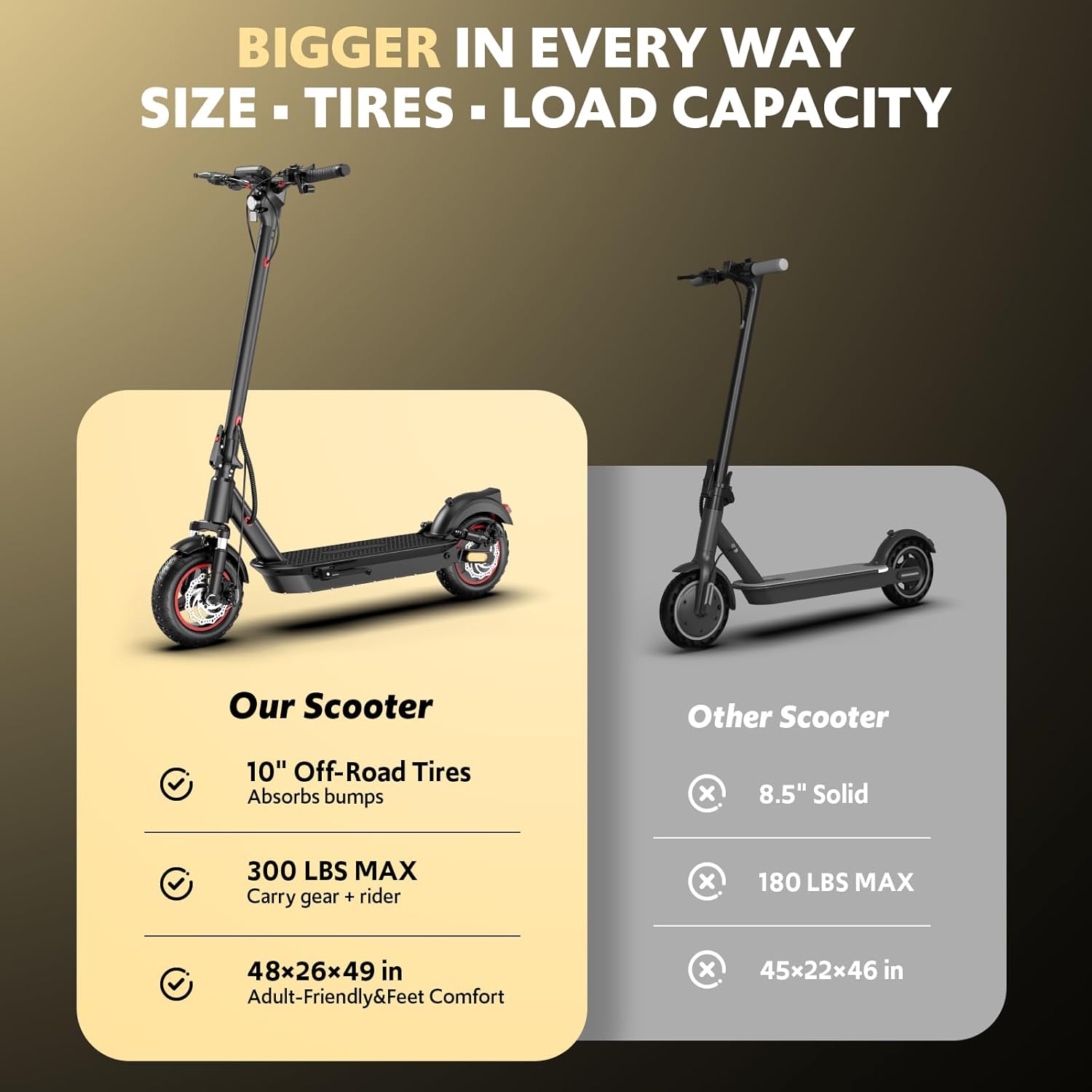 Equipped with 10-inch off-road tires and an advanced dual suspension system, this scooter excels on various surfaces—be it pavement, grass, gravel, or hills.