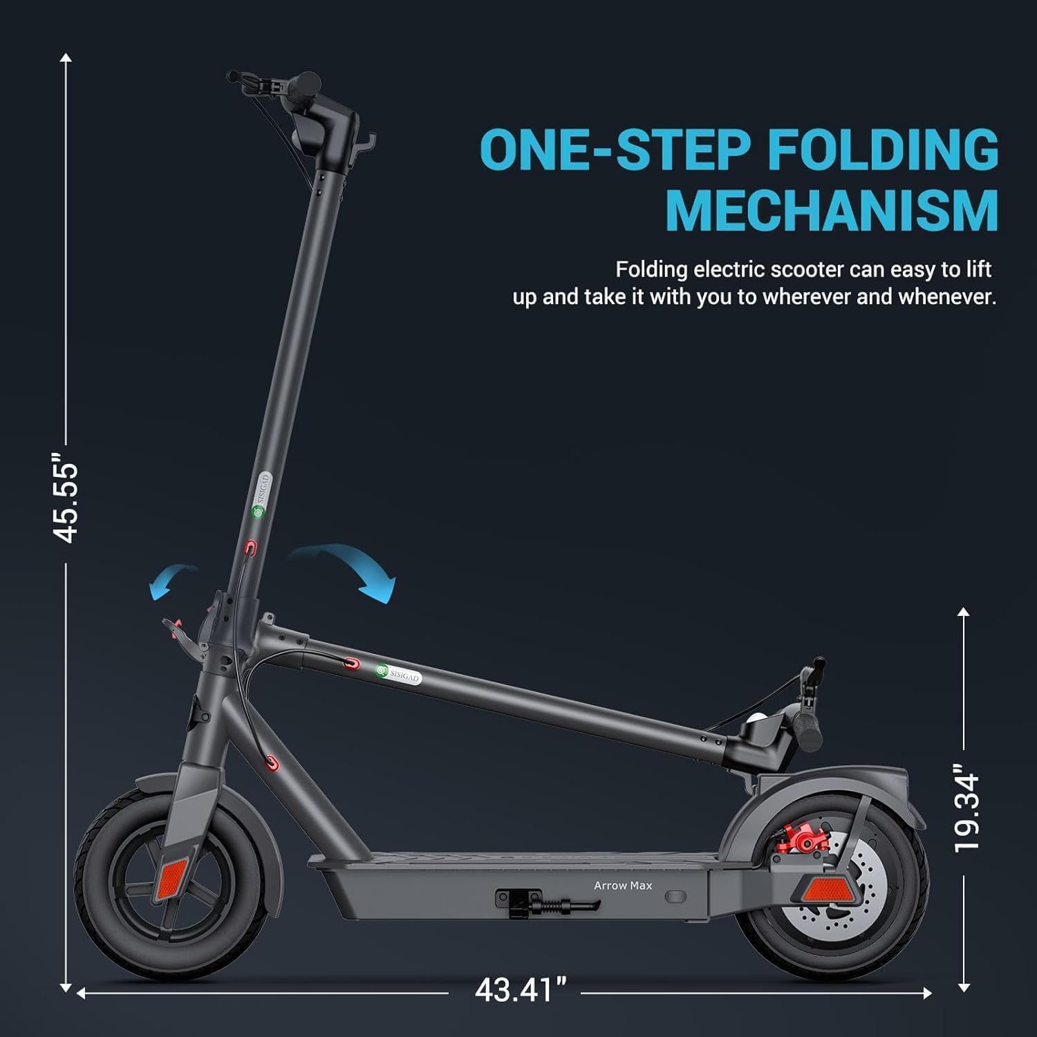 The scooter offers a convenient one-step foldable design, making it easy to store and transport. Whether you’re taking it in your car or storing it in a compact space at home, the SISIGAD Electric Scooter is designed for ease of use.