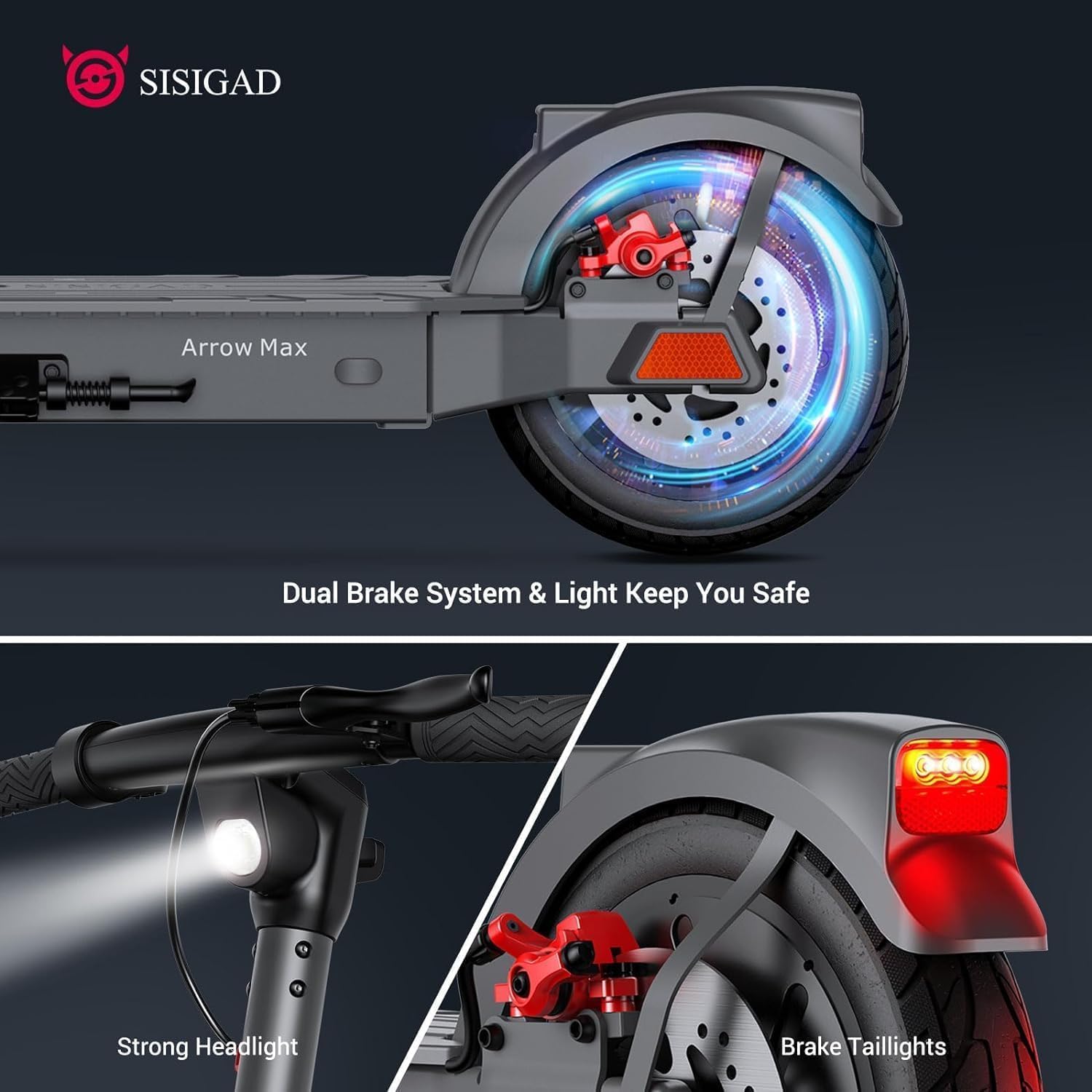 Visibility is key to safe riding. The SISIGAD Electric Scooter is equipped with bright front lights and a rapidly flashing rear brake light. These features substantially improve visibility during night rides, enhancing safety for you and other road users.