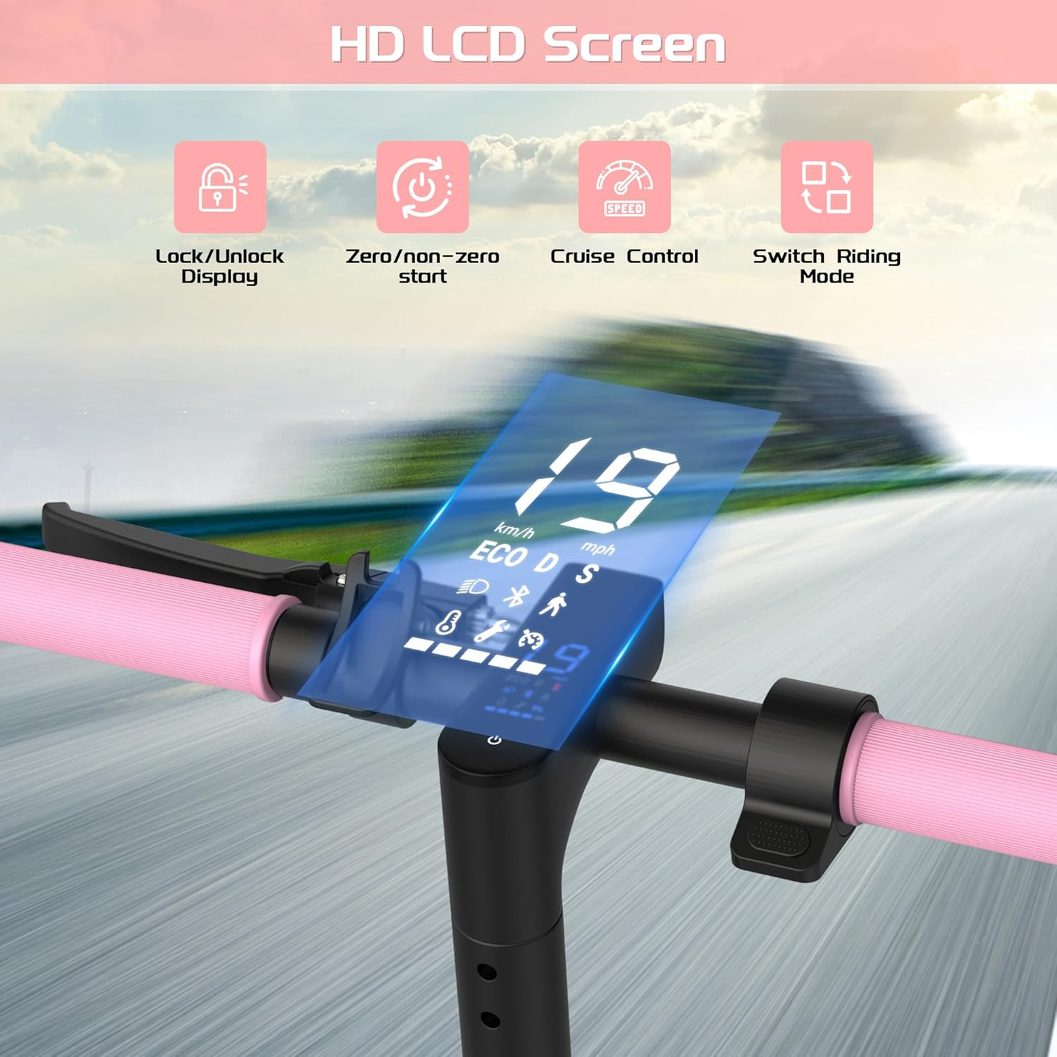 The heart of the MAXSHOT PR Pink Electric Scooter is its 350W high-torque brushless motor. With a top speed of 19 MPH, this scooter provides enough power for thrilling rides without sacrificing safety. Whether navigating busy streets or enjoying leisurely rides at the park, the motor guarantees strong acceleration and consistent power, perfect for any adventure.