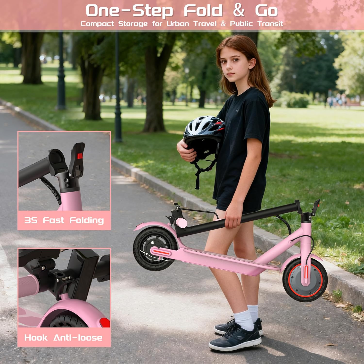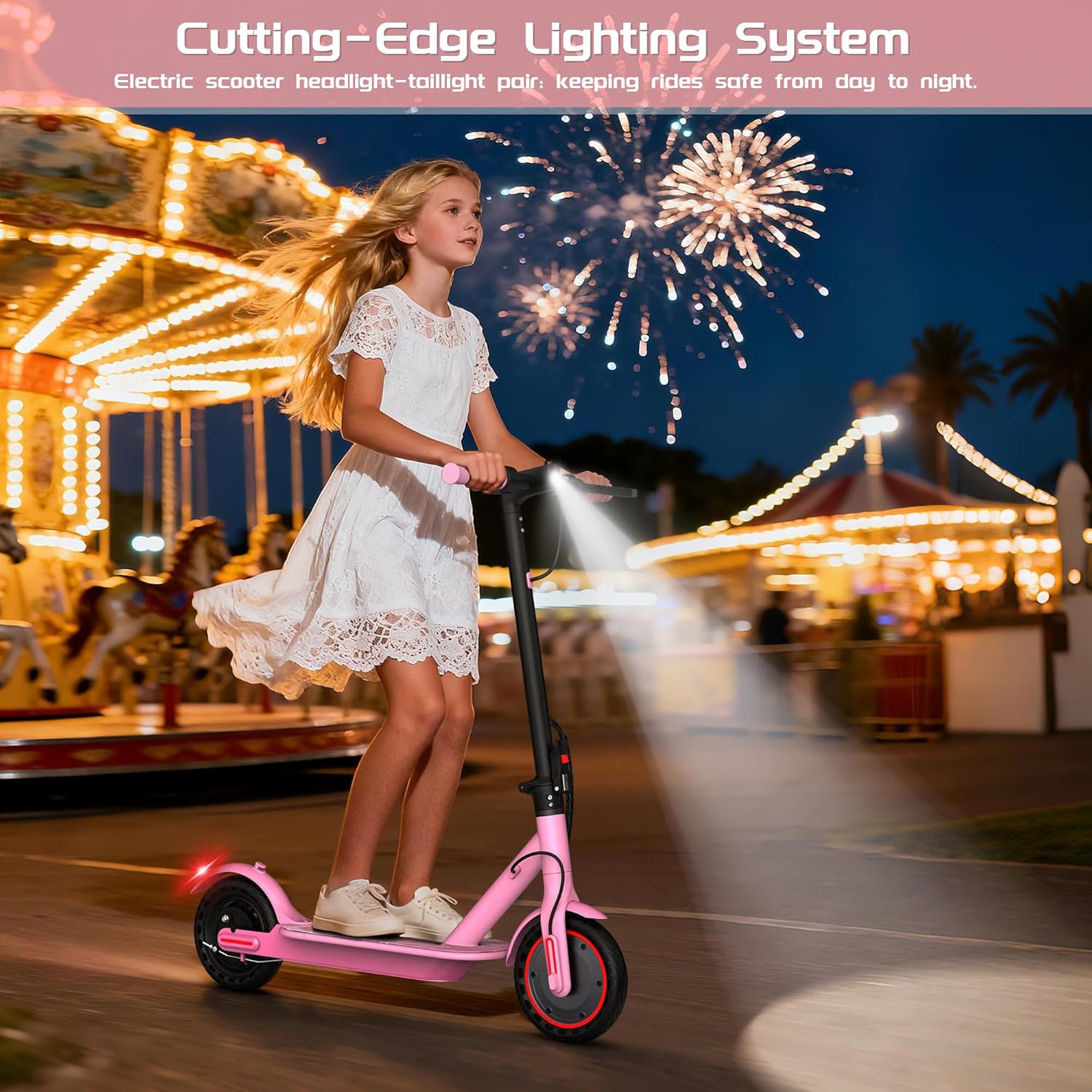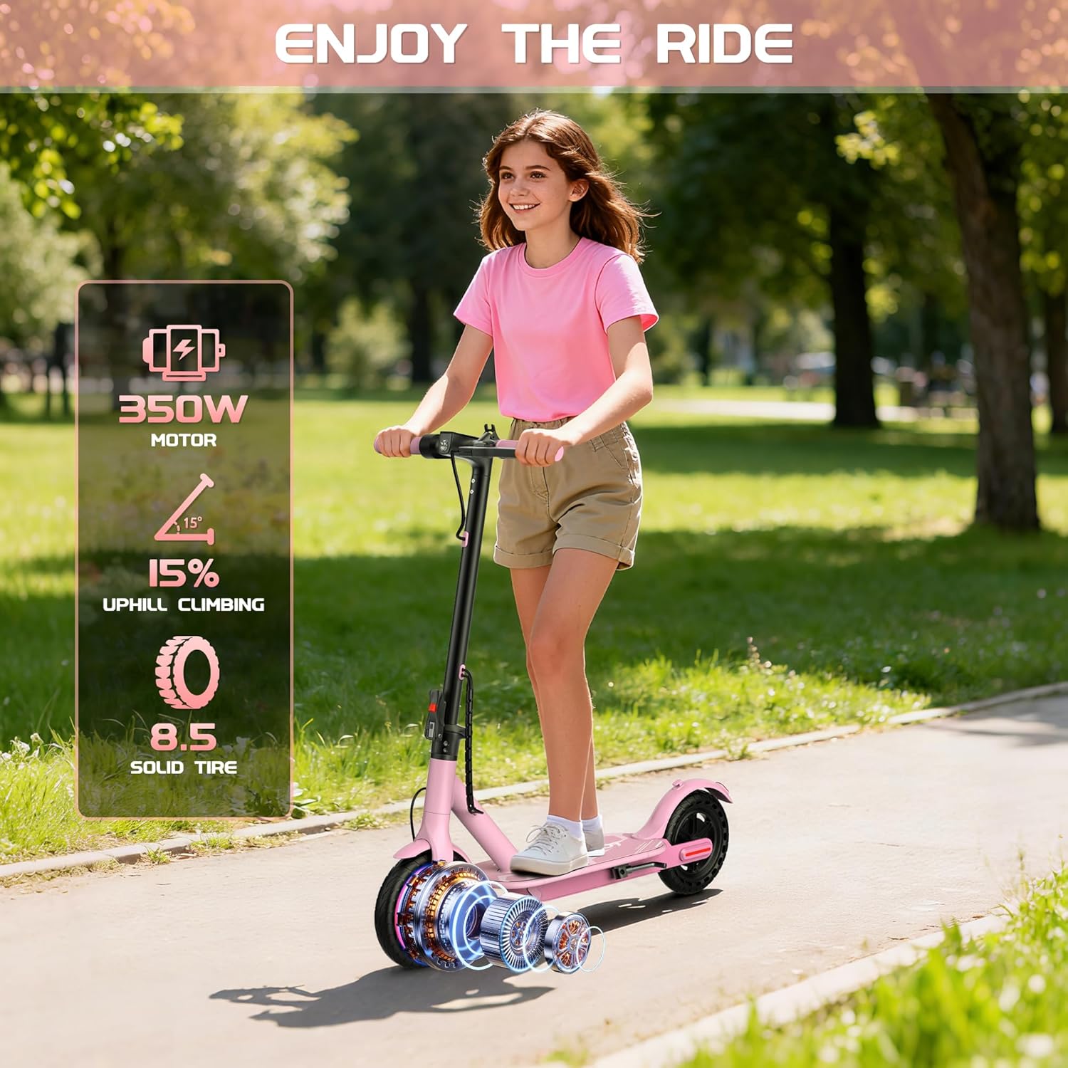 The scooter is designed for kids aged 10 and older, ensuring they have the motor skills and judgment needed for safe riding.