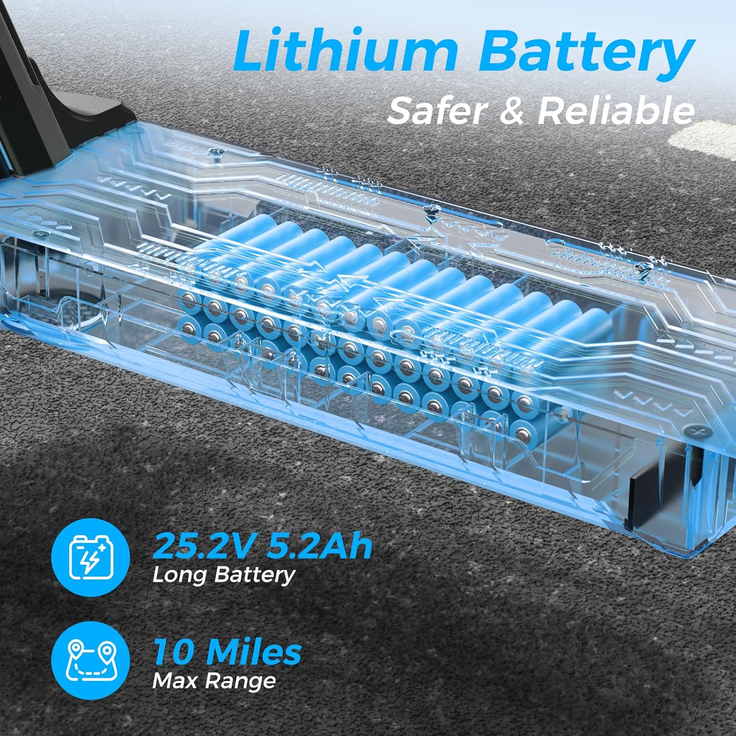 • Incredible Battery Life: lasts for 10 miles, promoting longer rides.