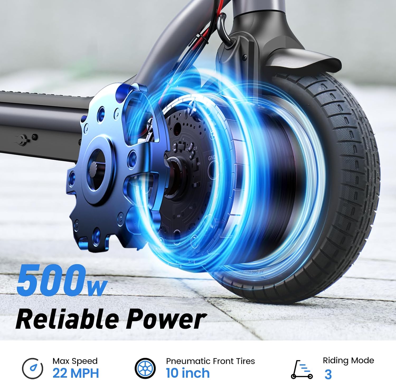 The heart of this electric scooter lies in its 500W motor, delivering robust acceleration and an exhilarating riding experience.