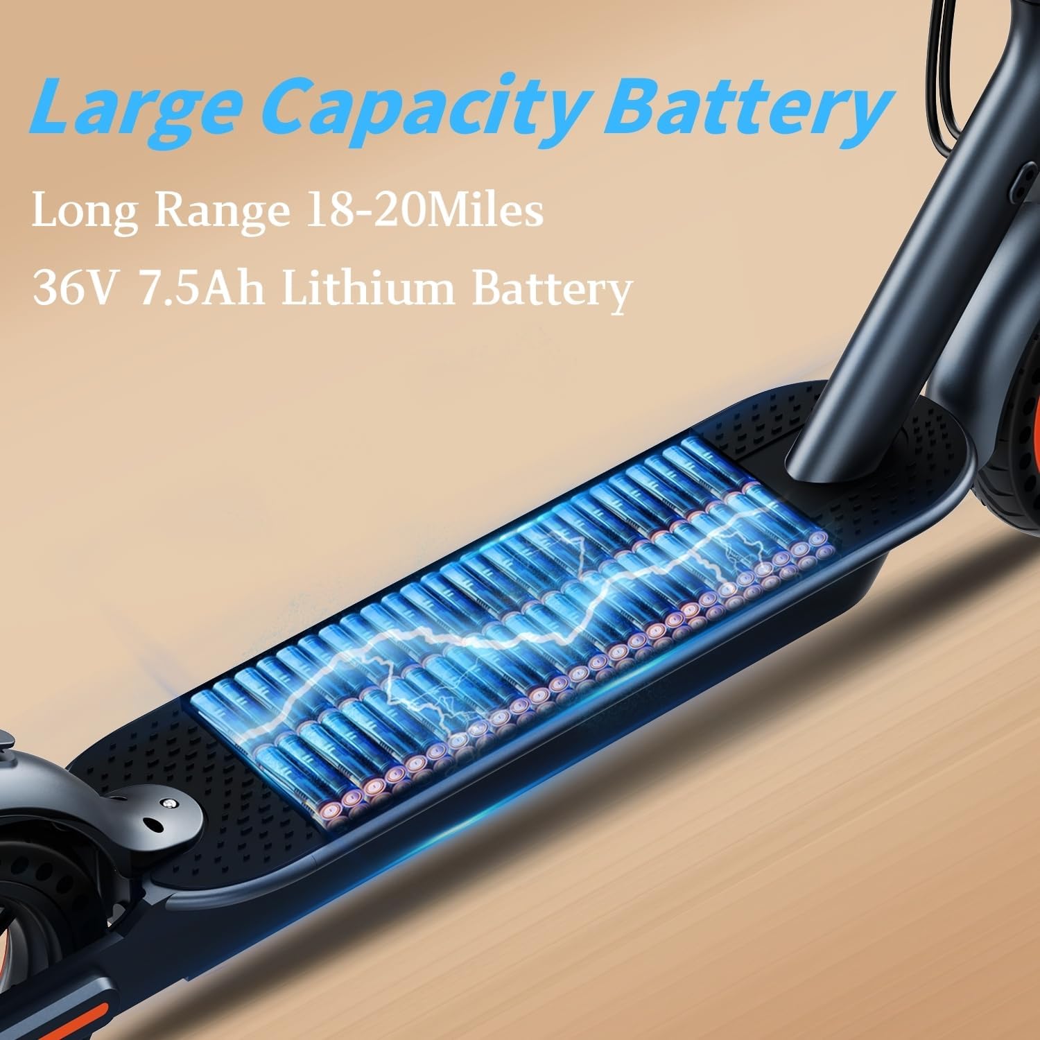 Equipped with a 36V/7.5AH high-capacity battery, this electric scooter boasts an impressive range of up to 21 miles on a single charge. Not only does this extend your travel distance, but it also minimizes downtime. You only need 4 to 5 hours for a full charge, enabling you to enjoy more time riding and less time waiting.