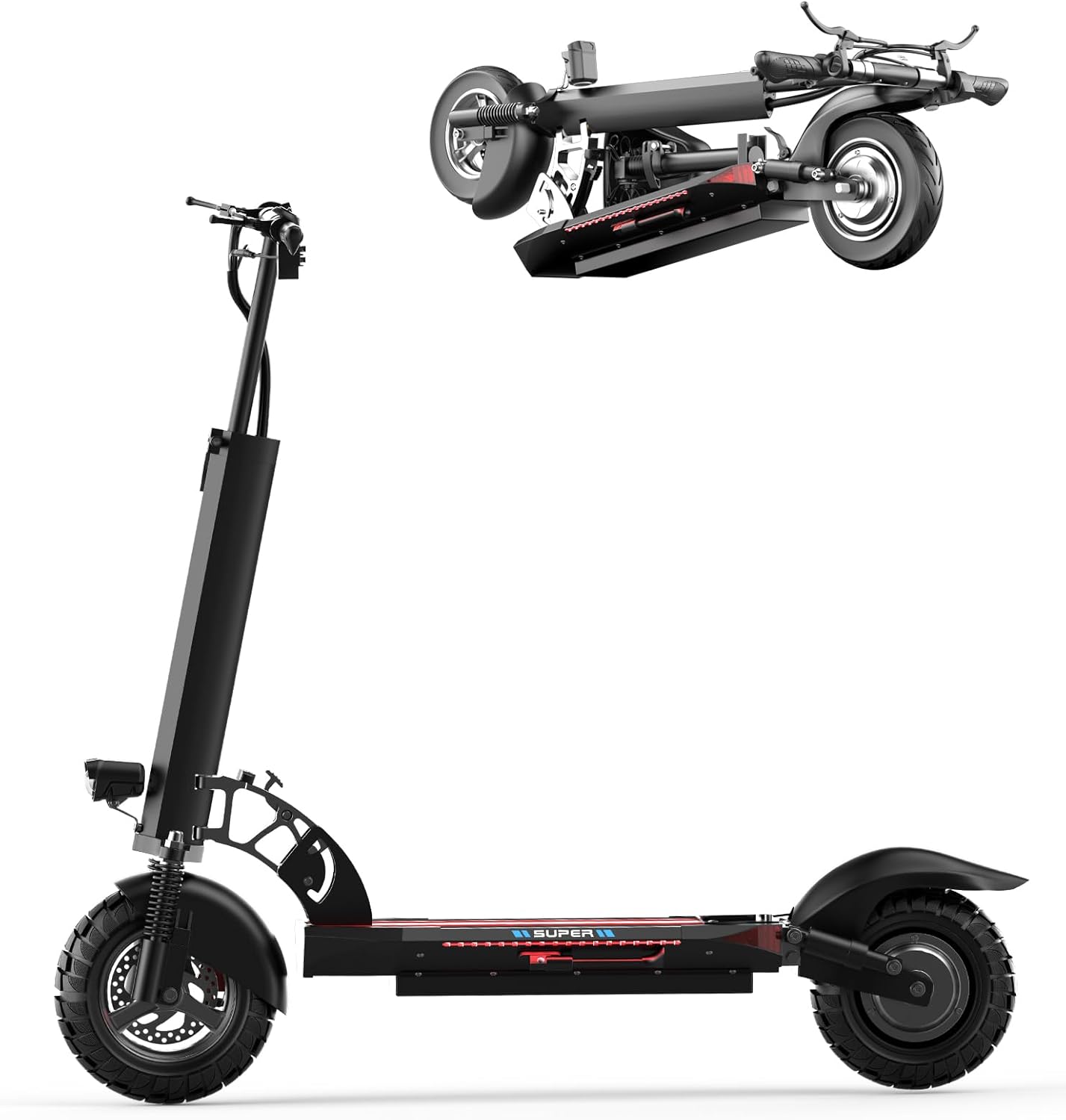 With 10-inch pneumatic tires and a full suspension system, this scooter effectively absorbs shocks and bumps, making your ride smooth and enjoyable on various terrains.