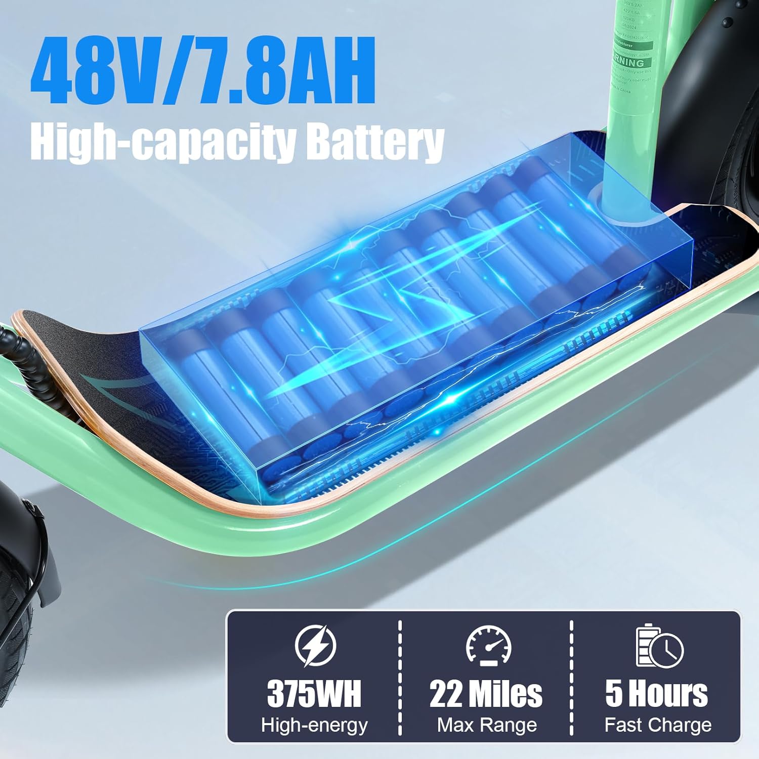 The scooter features a peak 800W brushless hub motor, allowing it to glide effortlessly up 15-degree hills. This powerful motor not only minimizes noise but also reduces maintenance costs, making it an efficient choice for regular use.