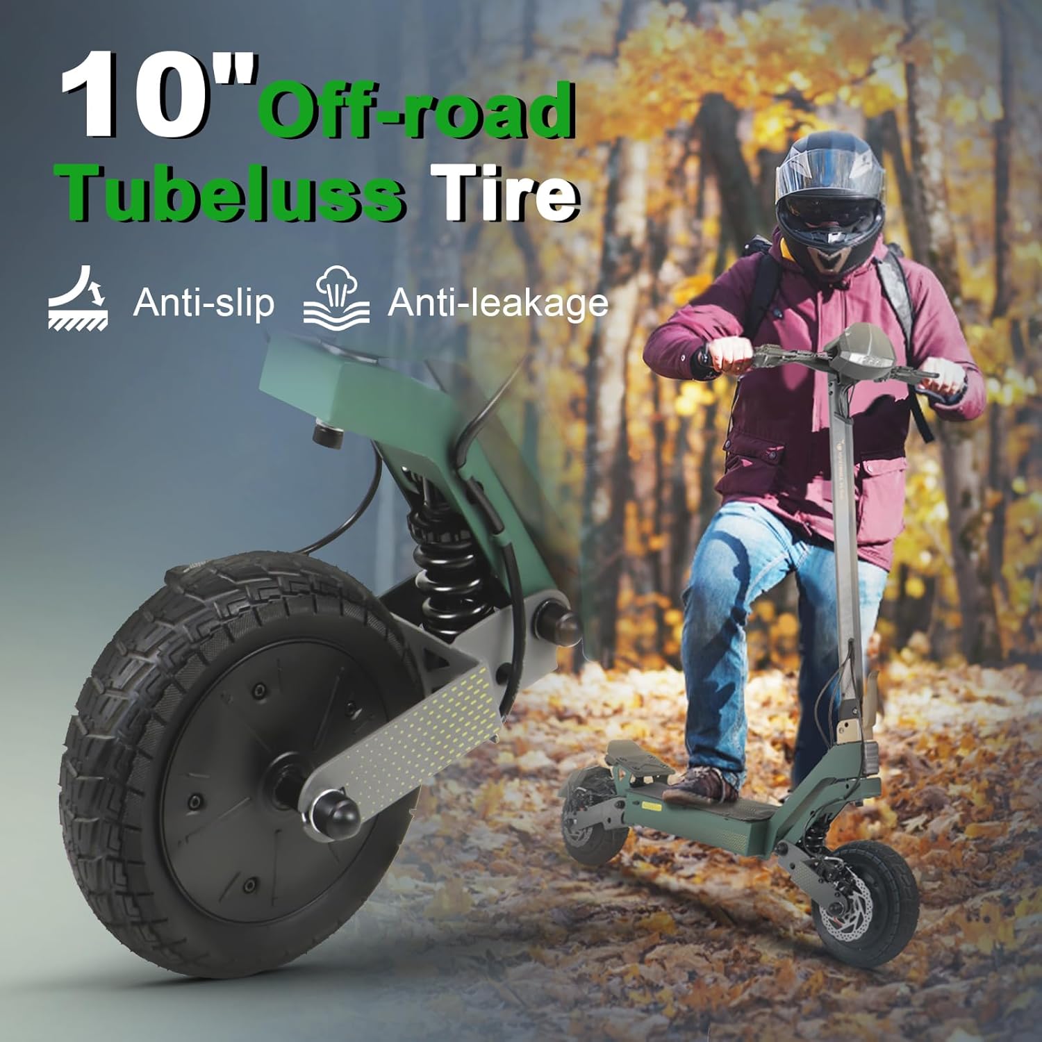 The HONEYWHALE H2D features 10-inch off-road tubeless tires along with an advanced suspension system. The front suspension and rear spring suspension provide excellent grip and shock absorption, making it suitable for all kinds of terrains, from city roads to rugged trails.