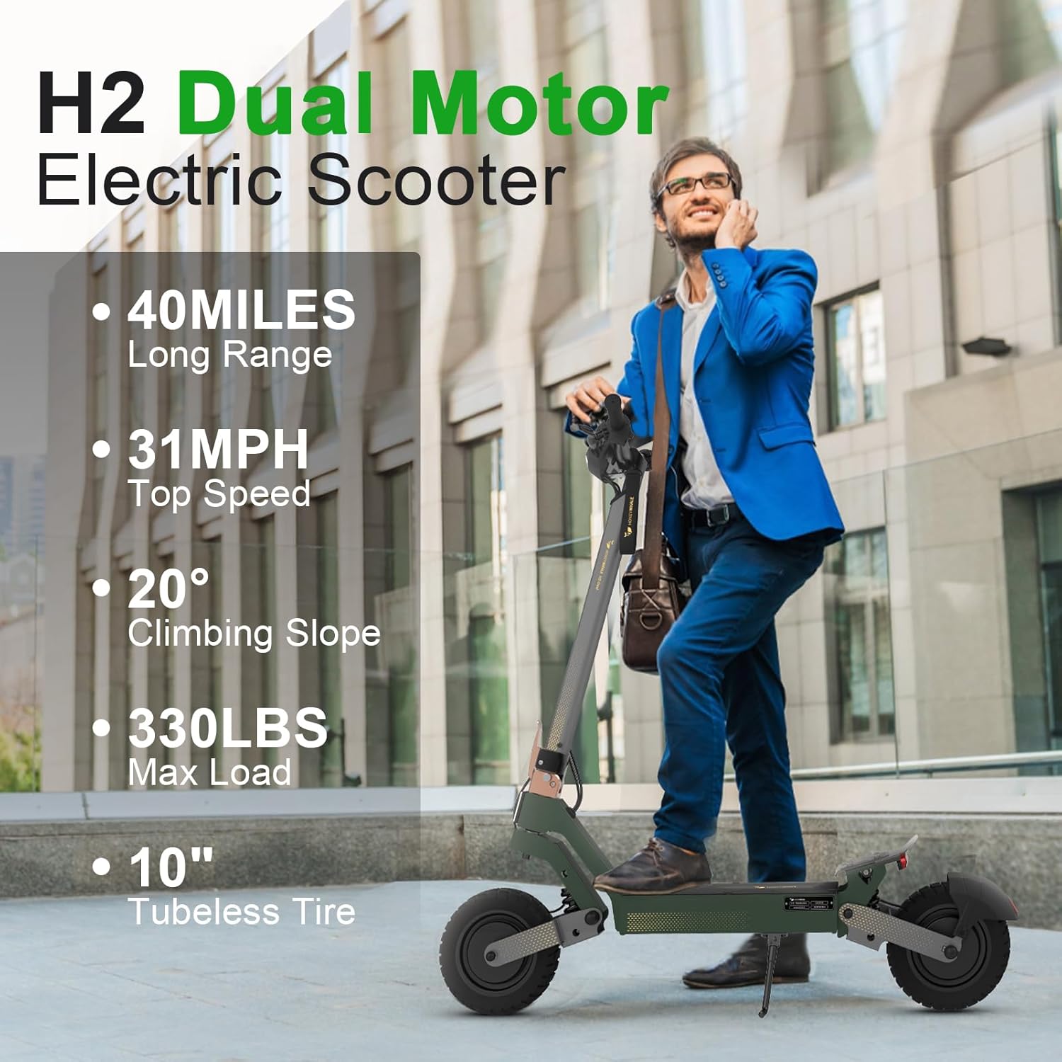 The HONEYWHALE H2D isn’t your average scooter; it boasts a variety of impressive features. With dual 1200W motors, a maximum speed of 31 mph, and a range of up to 41 miles, this scooter promises to deliver a thrilling ride while making it easier to navigate through different terrains.