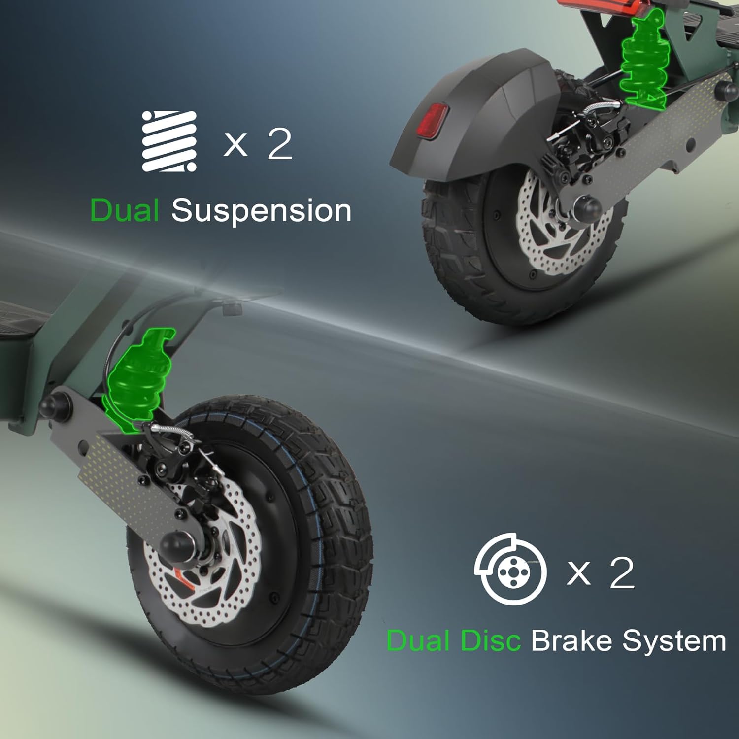 Equipped with dual brushless motors that deliver 1200W each, the H2D doesn’t just provide speed; it offers exceptional power. This electric scooter can climb gradients of up to 20 degrees, ensuring that it can tackle hills and steep paths with ease. The power distribution between the two motors enhances stability and balance, making your ride seamless.